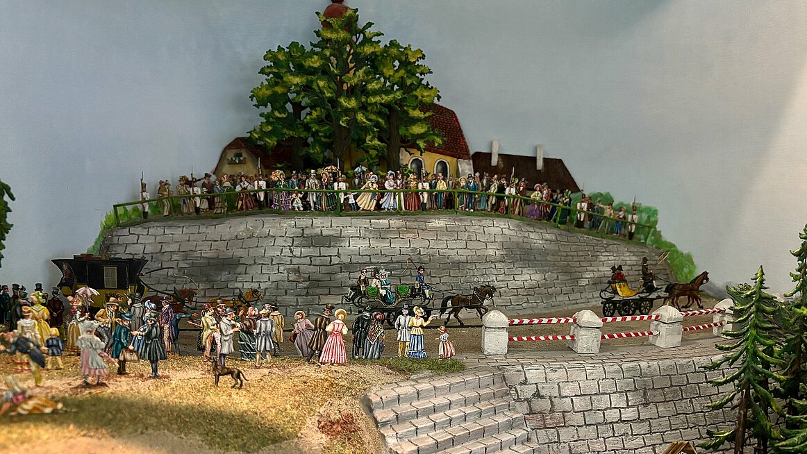 Gemütlich zuckelten wir mit dem nachgebauten Luxuswagen „Hannibal“, in dem einst der Kaiser selbst reiste, auf der originalgetreu rekonstruierten Trasse dahin. Das Klappern der Hufe, das Rattern der Räder und das Lächeln der in Biedermeierkleidung gekleideten Herren machten die kurze Fahrt zu einem kleinen Abenteuer mit großem Charme. Einige besonders Mutige aus unserer Gruppe schlüpften sogar selbst in Biedermeierkleider und fühlten sich sichtlich wohl in ihrer neuen Rolle.