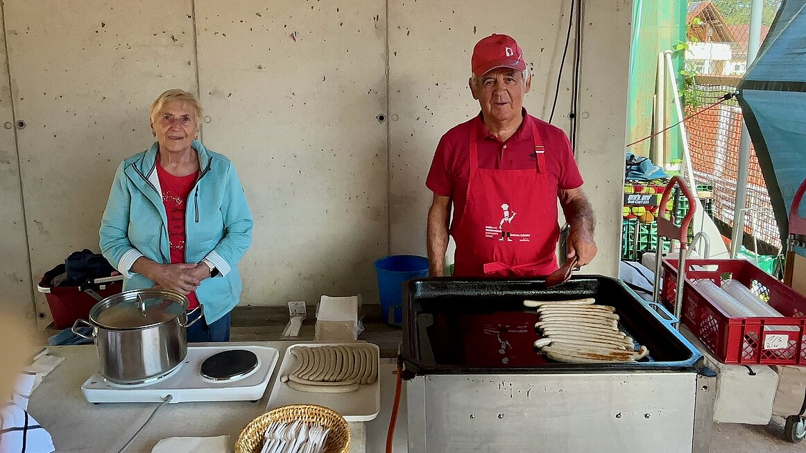 - Am Bratwürstelgrill stand Josef, unterstützt von seiner Frau Anni, die das Sauerkraut und die Beilagen perfekt auf die Teller brachte.