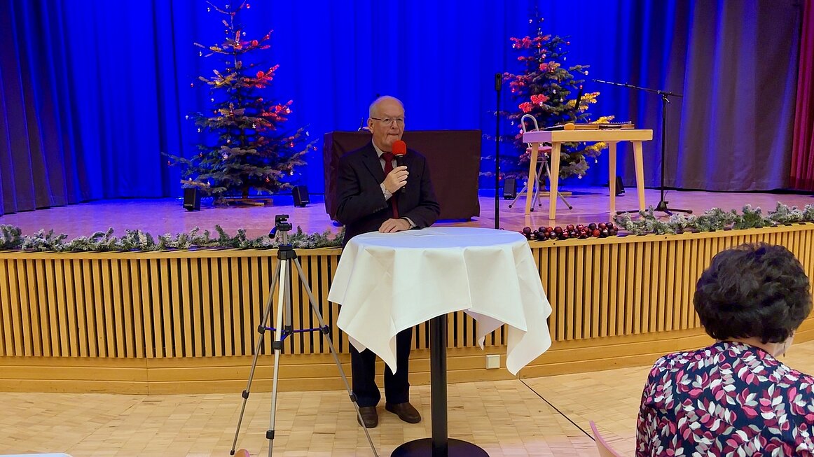 Abschließend bedankt er sich bei den Gemeinde- und Sozialvertretern sowie beim musikalischen Gestalter der Feier, der mit Zither-Musik für Unterhaltung sorgt. Er wünscht allen eine gute Stimmung, bedankt sich für das Vertrauen und die Unterstützung und schließt die Rede mit herzlichen Weihnachtsgrüßen und Dank an die Mitglieder.