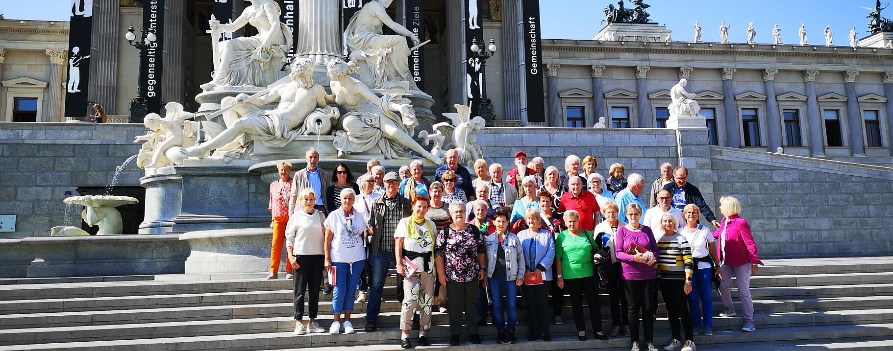 Am 18. September 2024 unternahmen 46 Teilnehmer einen spannenden Ausflug nach Wien. Die Abfahrt erfolgte um 8:00 Uhr in Haid. Nach einer angenehmen Fahrt erreichten wir um 11:30 Uhr das Parlament, wo wir nach einer Sicherheitskontrolle herzlich empfangen wurden.