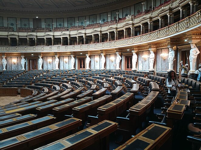 Um 12:00 Uhr begann die Führung durch das Parlament, die in zwei Gruppen aufgeteilt war und jeweils 50 Minuten dauerte. Anschließend trafen wir uns im Parlamentsclub der SPÖ, wo uns Frau Eva-Maria Holzleitner, Abgeordnete zum Nationalrat, begrüßte und eine kurze Ansprache hielt.
