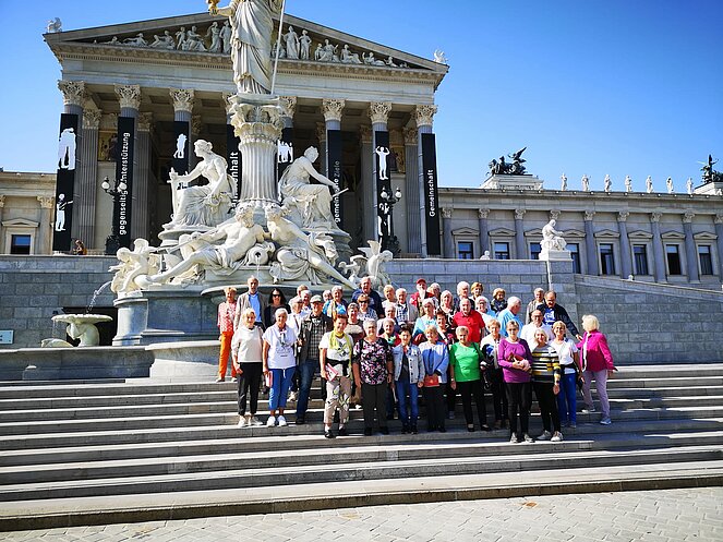 Am 18. September 2024 unternahmen 46 Teilnehmer einen spannenden Ausflug nach Wien. Die Abfahrt erfolgte um 8:00 Uhr in Haid. Nach einer angenehmen Fahrt erreichten wir um 11:30 Uhr das Parlament, wo wir nach einer Sicherheitskontrolle herzlich empfangen wurden.