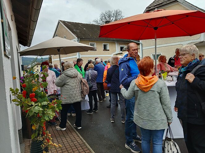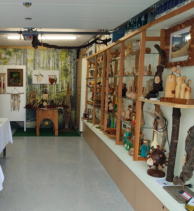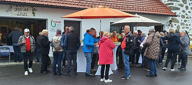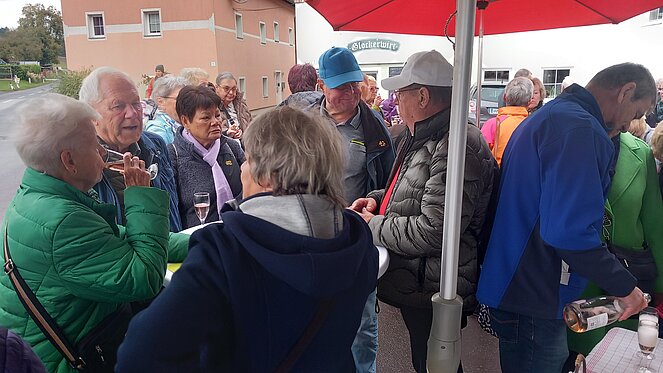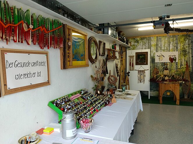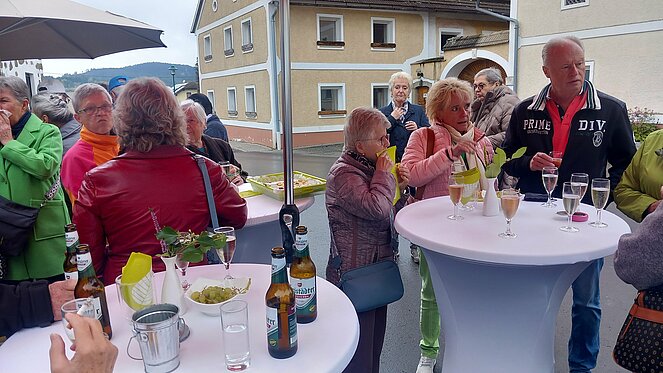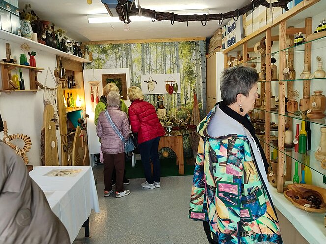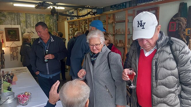 Erste Station war bei Hans Mayer und einer Ausstellung seiner von ihm produzierten kunsthandwerklichen Objekte. Hans Mayer hat vor Jahren eine Krebserkrankung überstanden und hat damals begonnen, seine Kreativität in Produkte umzusetzen und den Gesamterlös aus dem Verkauf der OÖ. Krebshilfe zu spenden. Nach einem Willkommenssekt wurden alle Produkte interessiert besichtigt und das eine oder andere gekauft.