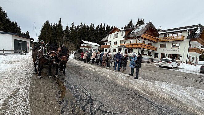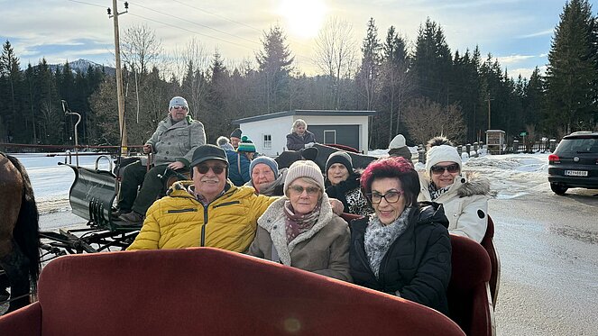 Nach einem gemeinsamen Mittagessen genossen wir eine idyllische Pferdeschlittenfahrt durch die winterliche Landschaft. Anschließend ließen wir den wunderschönen Tag bei Kaffee und Kuchen gemütlich ausklingen, bevor wir zufrieden die Heimreise antraten.