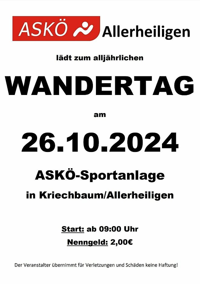 Einladung zum Wandertag des ASKÖ Allerheiligen