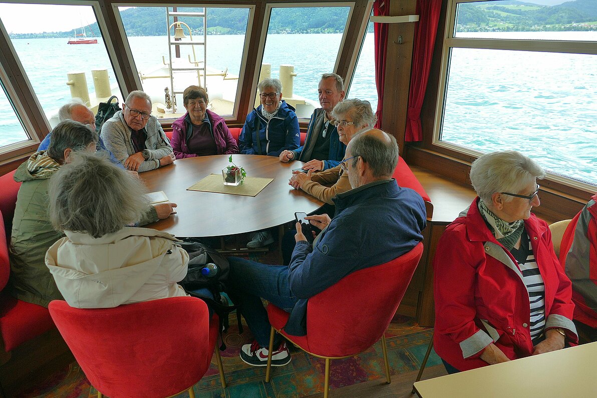 Mit unserer Obfrau, Fr. Elfriede Schimpl fuhren wir mit dem Schiff den Rundkurs Nord von Attersee, vorbei an Kammer und Weyregg, wieder zurück nach Attersee. Nach einer kurzen Busreise ließen wir uns den Keltenschmaus beim Spitzerwirt in St. Georgen im Attergau munden. Als Abrundung gab es für jeden ein Stamperl Schnaps. Nachmittags besuchten wir in Vöcklamarkt das Museum. Dieses Museum beinhaltet 5 Ausstellungen. Von den Museumsführern wurde uns das Uhrmacher Handwerk, die Römer im Vöcklatal, der Kaufmannsladen, Stilmöbel von 1875 und die Regionalgeschichte nähergebracht. Vollgepackt mit neuen Eindrücken und Wissen fuhren wir mit dem Bus wieder zurück.