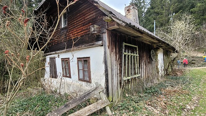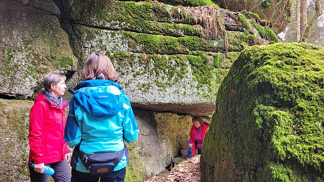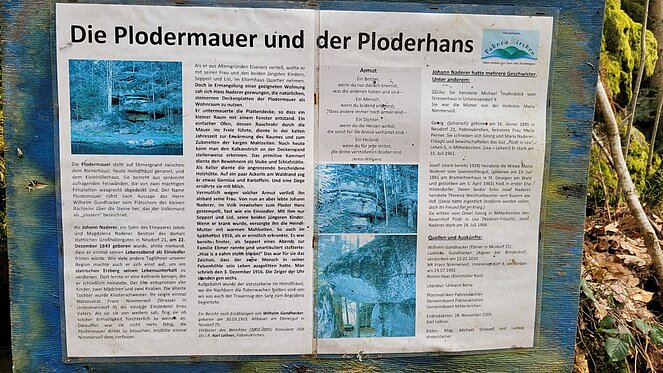 Start für unsere Wanderung war beim GH Lienhartsberger. Wir gingen den Plodermauer-Rundweg. Marianne erzählte uns die Geschichte vom "Ploderhans" der 1916 zwischen den Felsen sein Leben, mit seiner Frau und seinen zwei jüngsten Kindern, fristete.