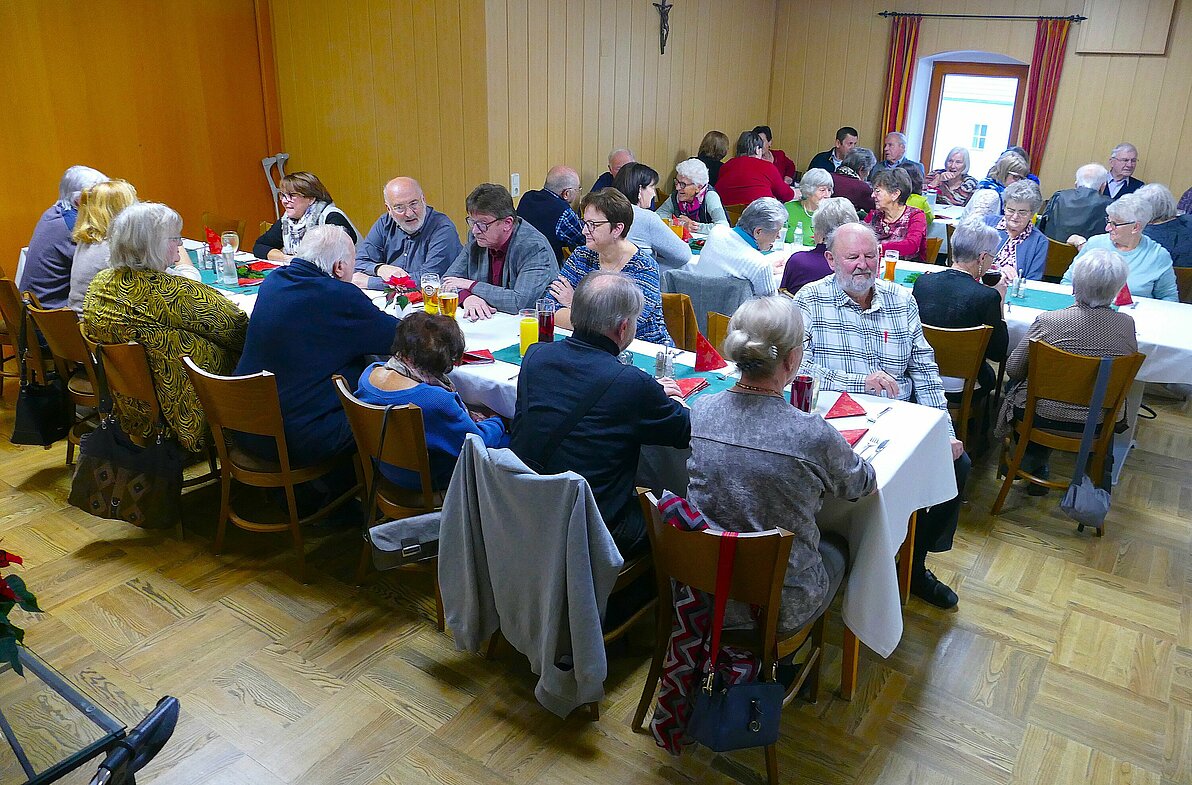 Die Obfrau, Fr. Elfriede Schimpl konnte als Ehrengäste den Bürgermeister, Hrn. Baumgartner sowie den SPÖ-Ortsparteivorsitzenden Hrn. Haunschmid begrüßen. Renate und Manfred Raab, sowie Ernst Illibauer begleiteten musikalisch unsere Feier. Nach dem köstlichen Mittagessen und einem gemeinsamen Weihnachtslied klang der Nachmittag gemütlich aus.