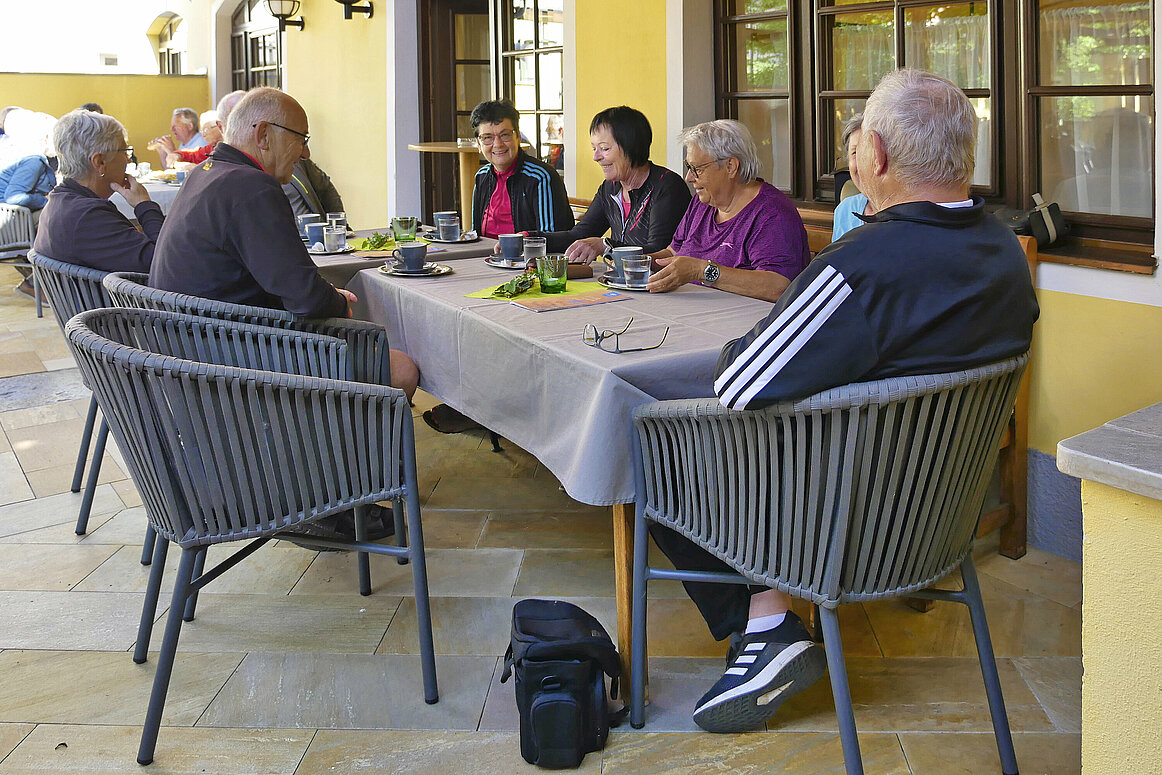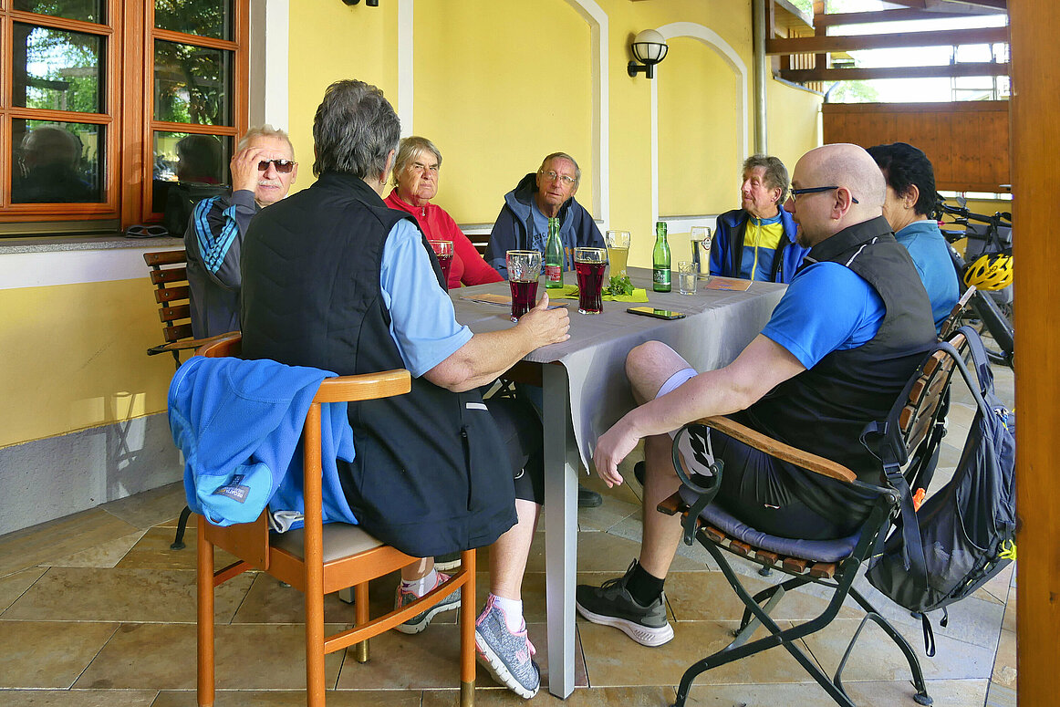 Unsere Radtour🚴♂️ startete in Arbing und führte uns mit 22 Radler*innen zunächst südwärts. Weiter entlang der Naarn bis nach Mettensdorf. Dort legten wir eine Pause 🥂 in Gerhards Reich ein – ein herzliches Dankeschön an Gerhard für die gastfreundliche Stärkung! Frisch erholt setzten wir unsere Fahrt entlang des idyllischen Donauradwegs fort, der uns bis nach Dornach führte. Von dort aus radelten wir weiter in Richtung Hofkirchen, bevor wir in Saxen eine genussvolle Frühstückspause im Bäckerei-Kaffeehaus Buchberger einlegten. Mit neuer Energie nahmen wir die letzte Etappe in Angriff und kehrten schließlich wieder nach Arbing zurück.