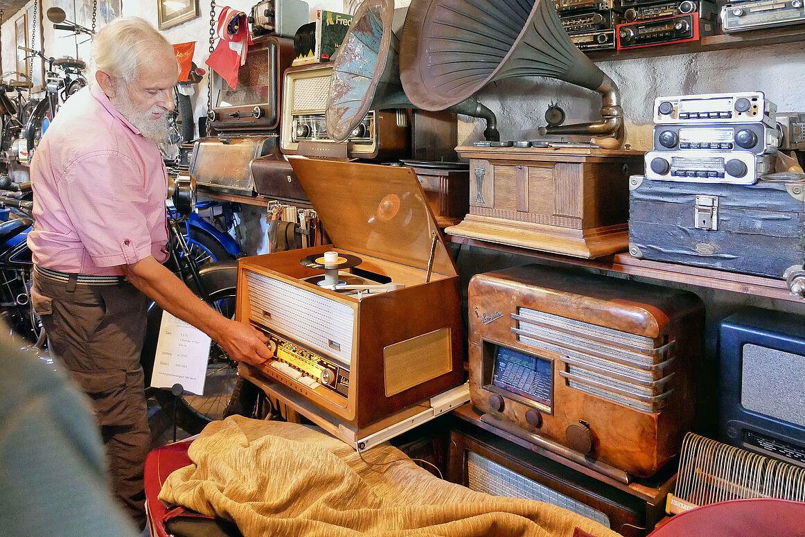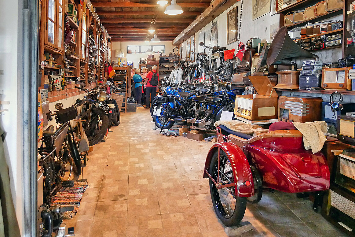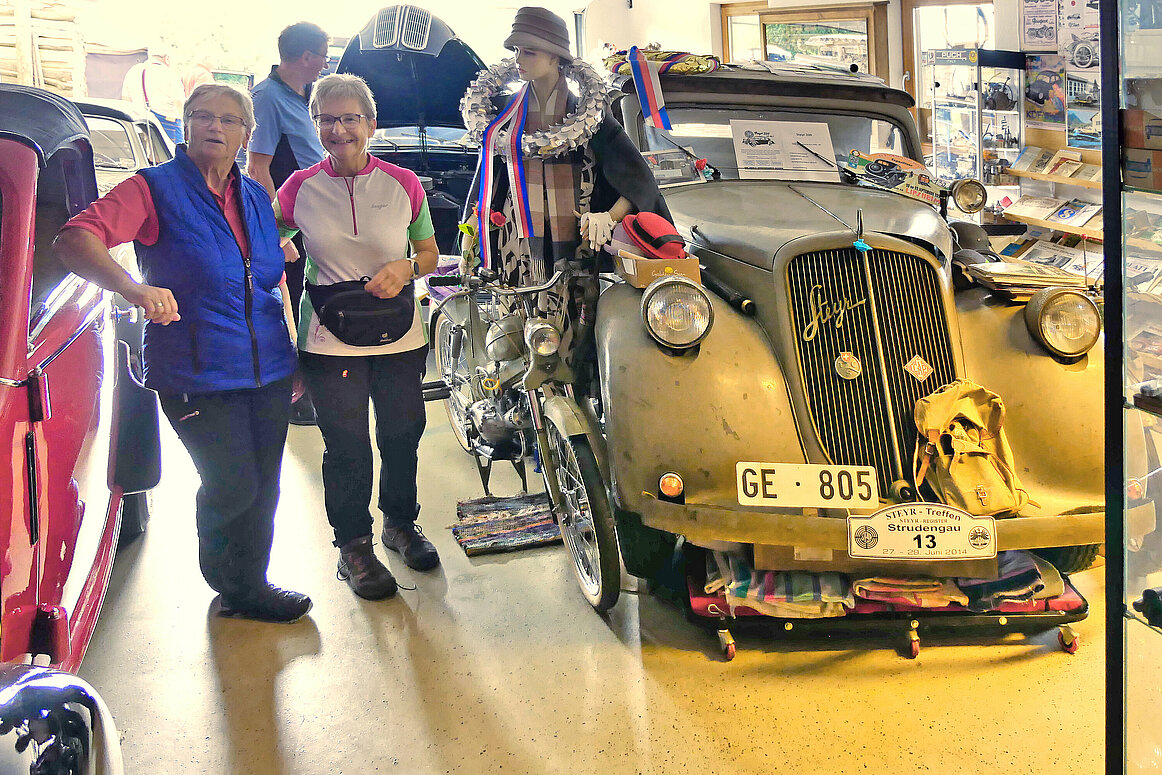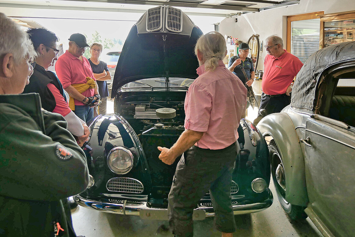 Dort erwarteten uns Regina und Martin mit einer beeindruckenden Sammlung an Oldtimern und Raritäten – ein echtes Highlight für Technikliebhaber und Nostalgiker. Für das leibliche Wohl war bestens gesorgt: Regina hatte bereits früh am Morgen köstliche Mehlspeisen gebacken, und auch erfrischende Getränke standen bereit.