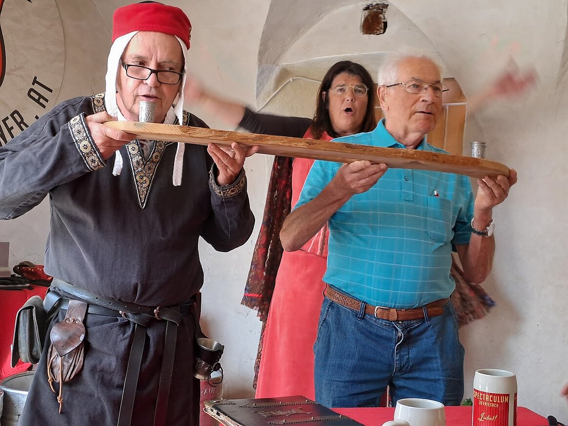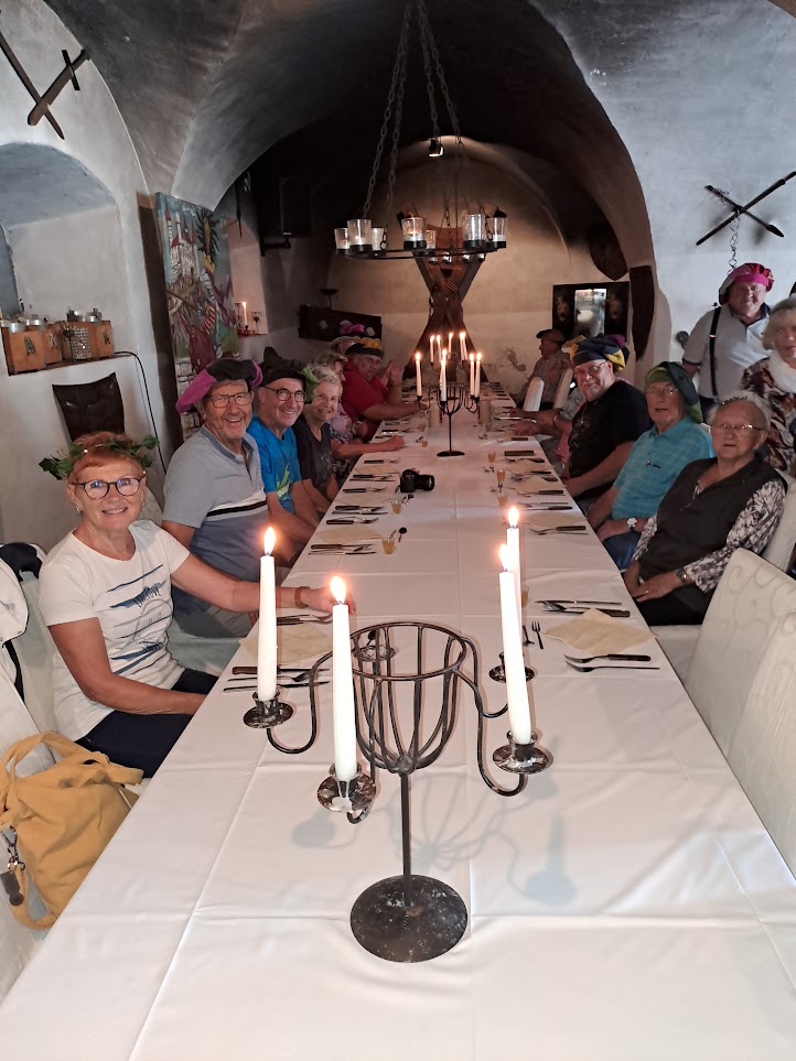 Weiter ging es in die älteste Stadt Kärntens, Friesach, wo wir die mittelalterliche Stadtanlage und den Fürstenhof erkundeten. Den Tagesausklang bildete ein fast vierstündiges Spektakeldinner, das mit Unterhaltung und gutem Essen keine Wünsche offenließ.