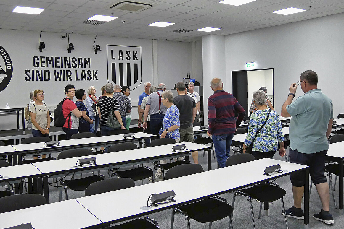 Anschließend besichtigten wir die Raiffeisen Arena, das LASK-Stadion. Es beeindruckte uns mit seiner modernen Architektur und den durchdachten Details. Während der Führung konnten wir die innovative Bauweise und die technischen Highlights des Stadions entdecken, die bei uns für großes Staunen sorgten.