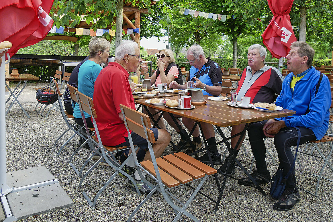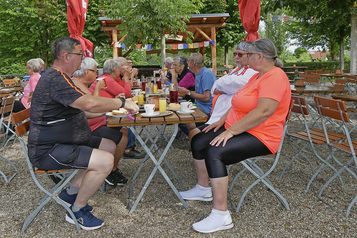 Bei herrlichem Wetter radelten🚴♂️ wir zunächst zum Donaukraftwerk Wallsee/Mitterkirchen und folgten dann weiter dem Donauradweg bis nach Au an der Donau. Im gemütlichen Donaustandl legten wir eine Frühstückspause ein. Besonders schön war es, Regina zu ihrem Geburtstag🎂🎉 herzlich zu gratulieren. Nach dieser erholsamen Rast traten wir die Rückfahrt an. Die Route führte uns über Strass und weiter durch die Orte Staffling und Langacker, bevor wir schließlich in Arbing ankamen.