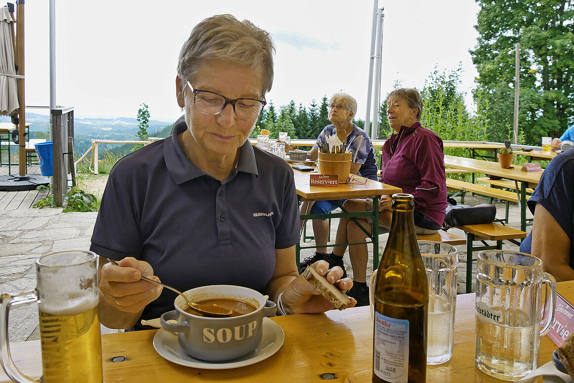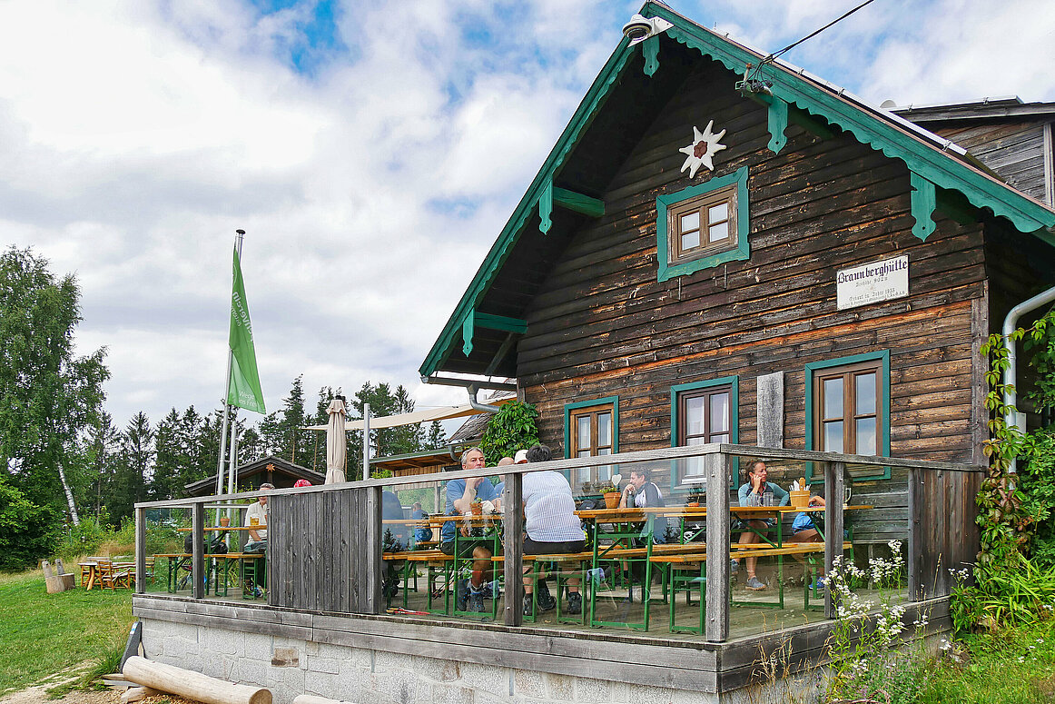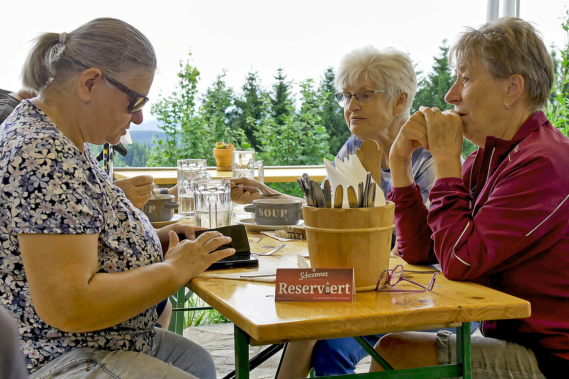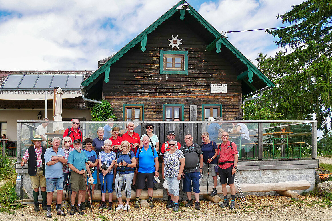 Unsere abwechslungsreiche Rundwanderung 🚶♀️ startete beim Parkplatz P9 in St. Oswald. 18 Wanderinnen und Wanderer machten sich bei bestem Wanderwetter auf den Weg in Richtung Braunberg. Nach etwa 1 Stunde und 20 Minuten erreichten wir die Braunberghütte, wo wir unser Mittagessen einnahmen.