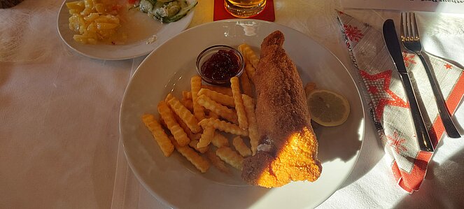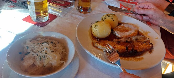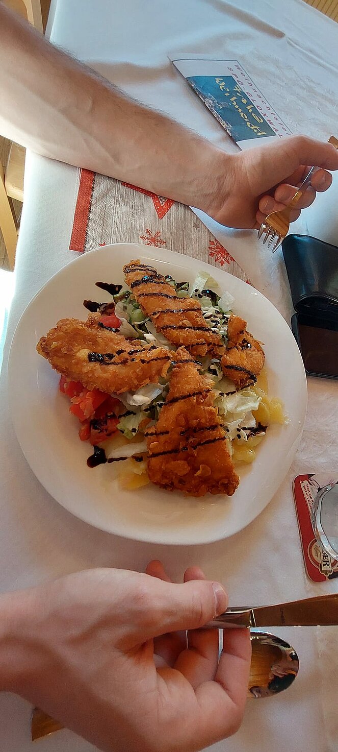 Die Portionen der Hauptspeise waren riesig und auch bei den Mehlspeise waren die Torten Ecken