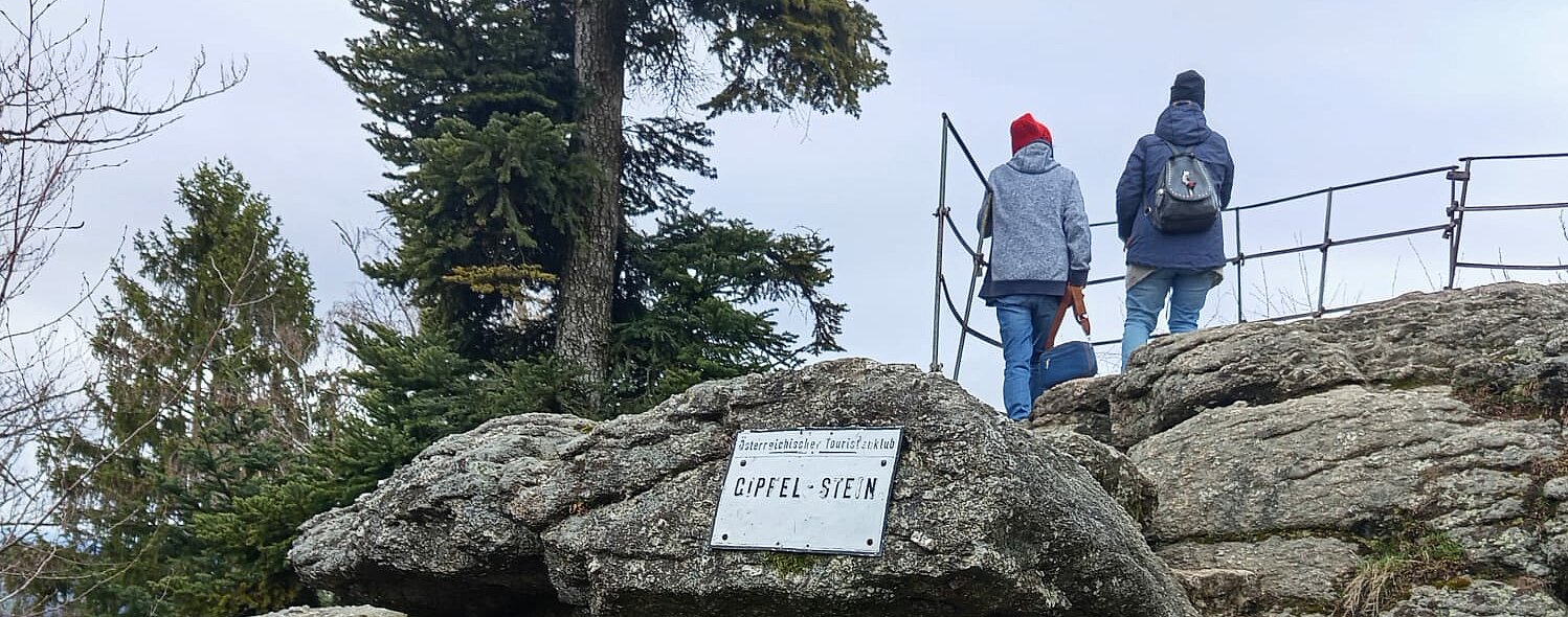 Zum Gipelstein/Brandstetterkogel ging es mit dem Auto bis zum Parkplatz bei der Donaubrücke, danach startete auch hier unsere gemeinsame Wanderung. Einkehr hier bei der Hütte am Kogel.