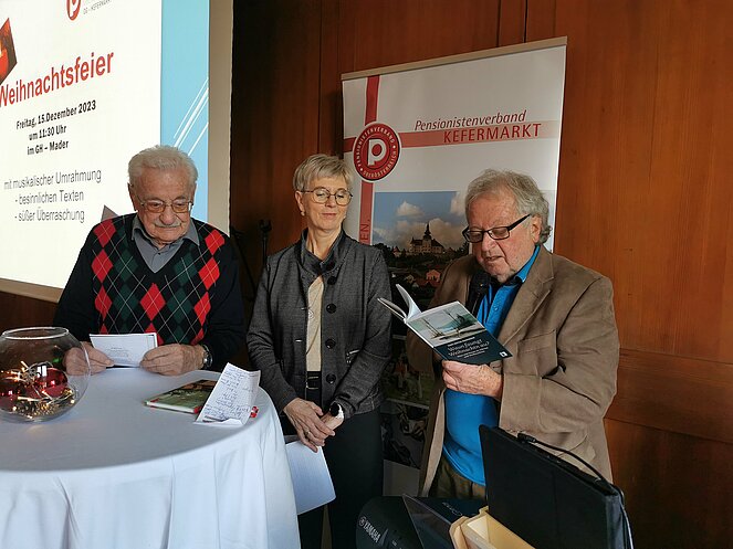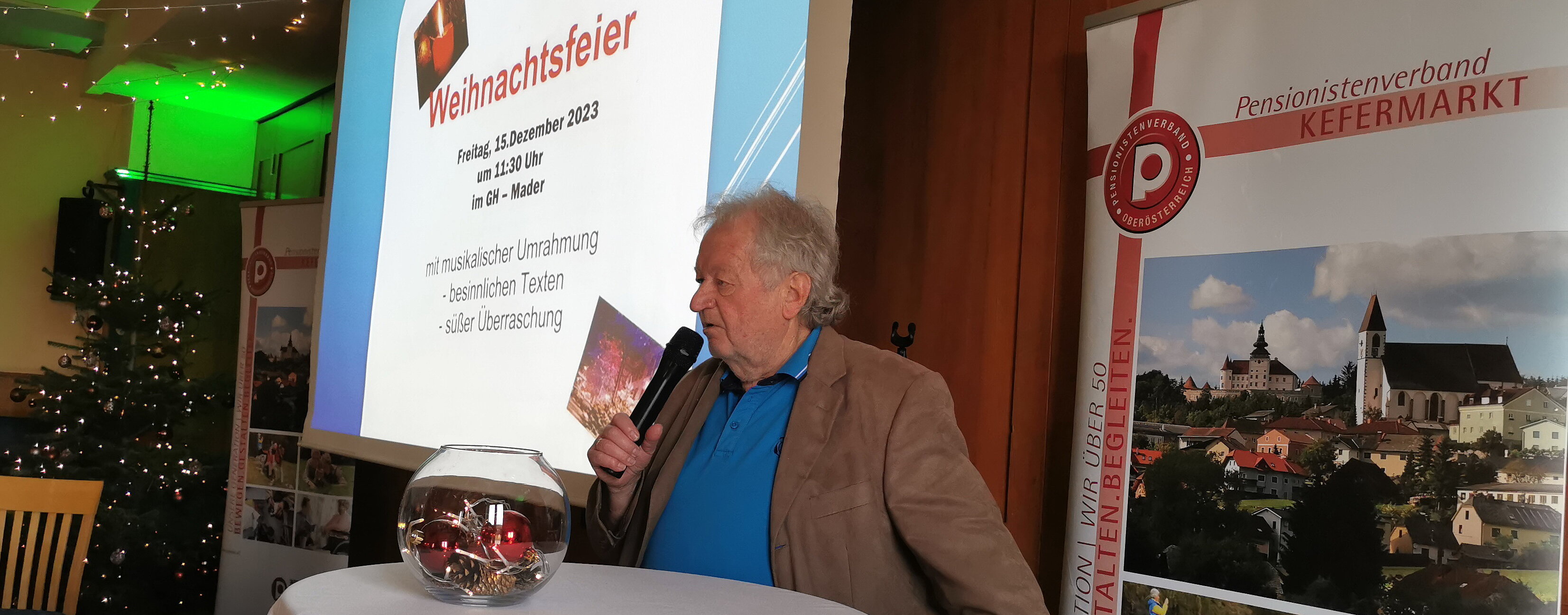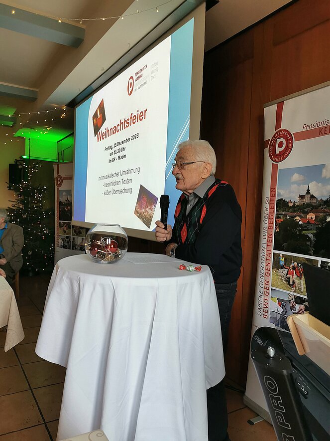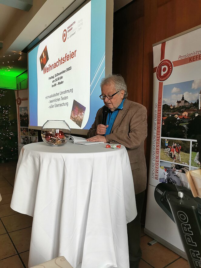 Die heurige Weihnachtsfeier war sehr gut besucht. Vorsitzender Sepp Krupka konnte wieder einige jung "Pensionist:innen" begrüßen. Mit humorvollen und besinnlichen Texten - gelesen von Manuela Hochedlinger, Manfred Fliegel und Sepp Krupka - wurde die Feier sehr unterhaltsam. "Joe" Poscher hat die Veranstaltung musikalisch umrahmt. Von einigen Frauen wurden die selbstgefertigten Weihnachtssterne und Mehlspeisen verteilt.