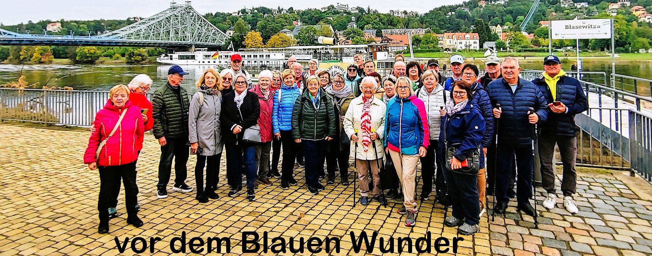 Am Sonntag machen wir in Dresden die „Große Entdeckertour“ per Schiff und Hop on-Bus. Als erstes besichtigen wir den Zwinger, leider ist im Innenhof noch immer eine Riesenbaustelle. Für Altstadt und Barockviertel mit der Residenz gibt’s einen Rundgang mit Führung. Anschließend geht’s mit dem Raddampfer nach Basewitz zum Blauen Wunder. Mit der Schwebebahn fahren wir nach oben und genießen von dort die Aussicht, dann besteigen wir wieder den Bus zurück in die Altstadt. Von den Brühlschen Terrassen sehen wir noch die eingestürzte Carola-Brücke bevor wir zum Abendessen im Hofbräu einkehren.