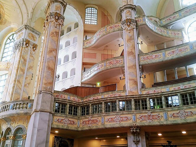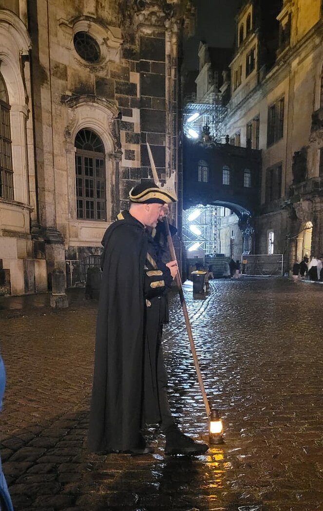 Am Montag geht‘s vormittags zur Moritzburg nördlich von Dresden, ein Barockschloss der Sächsischen Fürsten mit sehenswerter Einrichtung und schönem Park. Um 13:30 Uhr besuchen wir die Frauenkirche, eine interessante Führung bringt uns die Geschichte des Wiederaufbaus näher. Anschließend schlendern wir ein wenig über den Altmarkt und den Neumarkt, denn um 16 Uhr geht’s zu einer Führung in die Semperoper, ein wunderschönes Theater. Diesen Abend verbringen wir in der Altstadt, denn es wartet noch ein Höhepunkt auf uns – die Nachtwächter-Führung. Sehr humorvoll unterhält uns ‚Hieronimus Sarkassmus‘ mit Anektoten aus der Zeit des Fürsten ‚August der Starke‘.