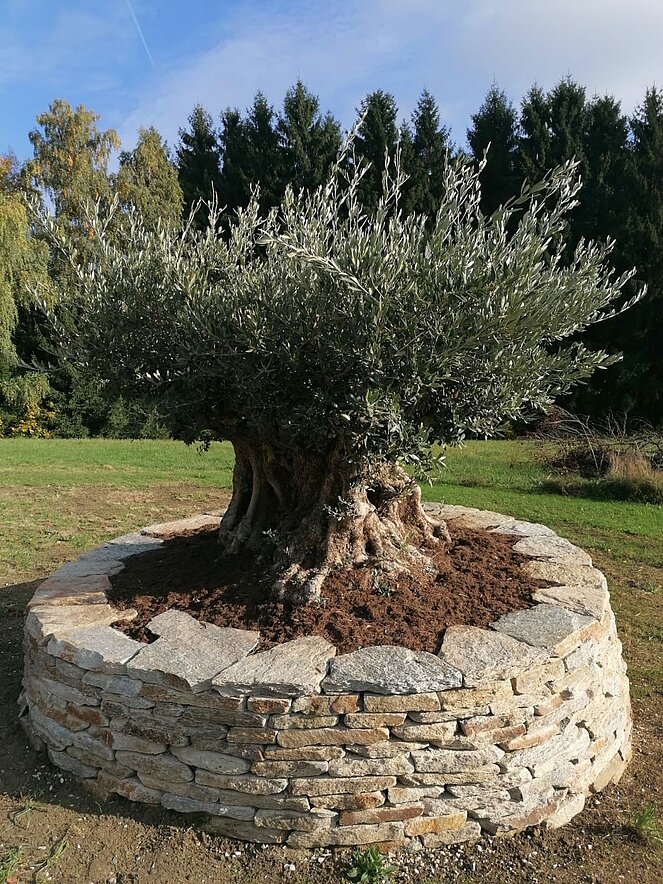 Dort gibt es den ersten Mühlviertler Olivenhain mit über 200 Bäumen - neuester Zugang ist ein sehr alter Olivenbaum, der trotzdem im rauhen Mühlviertler Klima sehr gut gedeiht.