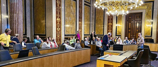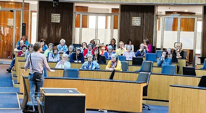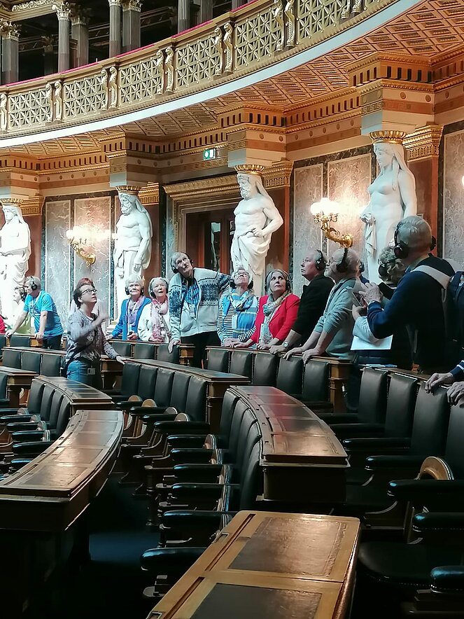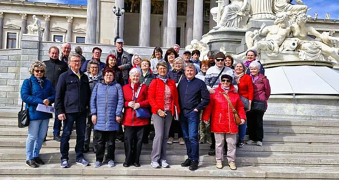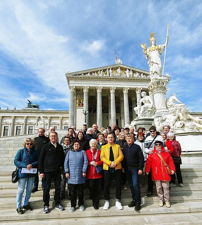 Mit 39 Mitgliedern fuhren wir nach Wien, wo wir an einer sehr interessanten Führung durchs Parlament teilnahmen. Da nur 34 Personen an der Führung teilnehmen konnten, besuchte der Rest der Gruppe den Naschmarkt. Zum anschließendem Mittagessen in der Cantina im Parlament trafen wir wieder zusammen.