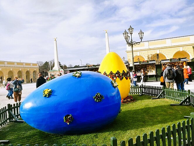 Nach einer kleinen Busrundfahrt um den Ring mit Erklärung vieler Sehenswürdigkeiten durch unseren Chauffeur Wolfgang ging es weiter nach Schloss Schönbrunn zum Ostermarkt. Dort bummelten wir durch die vielen Osterhütten mit viel Kunsthandwerk und kulinarischen Köstlichkeiten.