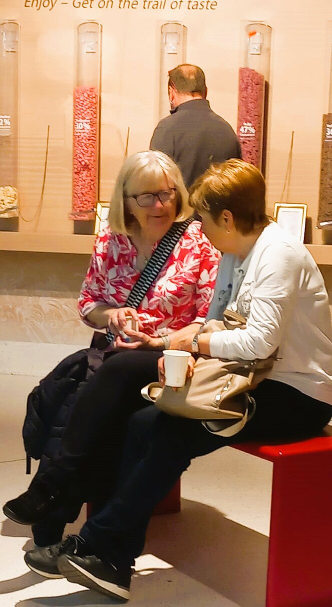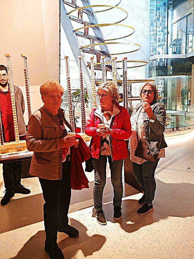 Nach dem höchsten Schokobrunnen der Welt und einer ausgiebigen Verkostung verschiedener Schokoladen und köstlicher Pralinen ging's noch zu Adler Moden. Nach Kaffee und Kuchen war noch Gelegenheit zum Gustieren und Shoppen.