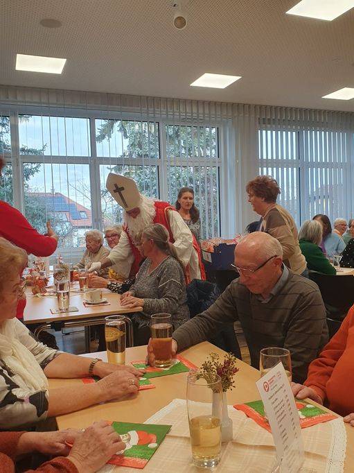 Beim gemütlichen Kaffeenachmittag wurden wir vom Nikolaus besucht, der an die Mitglieder Süßes verteilte. Im Schlepptau hatte er den *schiachen*Krampus dabei, der zwar recht bedrohlich aussah, aber der dann doch ein sanfter Kramperl war.