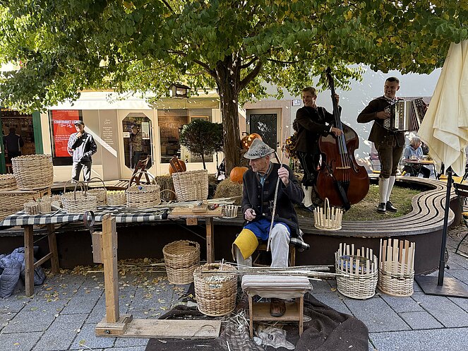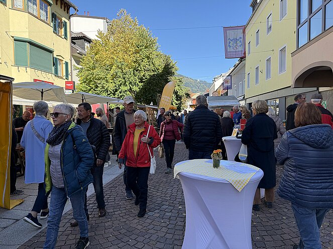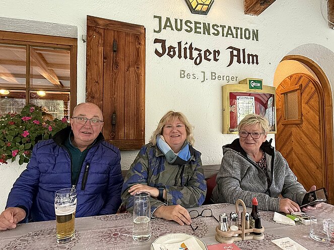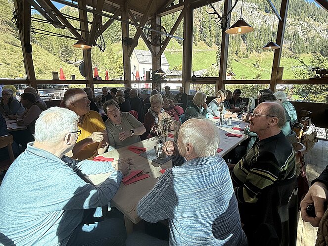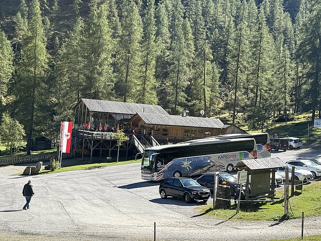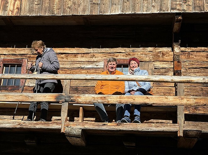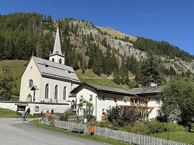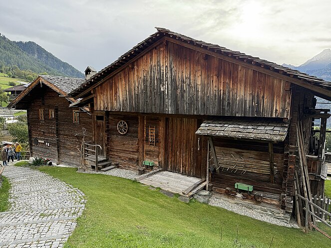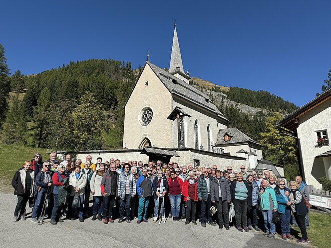 Am nächsten Tag fuhren wir nach Innervillgraten, wo wir ein kleines Freilichtmuseum des Alpinen Lebens in vergangenen Zeiten besichtigten. Anschließend ging es nach einer kurzen Fahrt zur Wallfahrtskirche klein Maria Schnee im Ortsteil Kalkstein, der auch als Drehort einiger Heimatfilme bekannt wurde. Gleich gegenüber genossen wir in der Badlalm ein ausgezeichnetes Mittagessen. Bei der Heimfahrt ins Hotel machten wir noch einen Abstecher nach Lienz wo es im Zentrum einen Bauernmarkt gab.