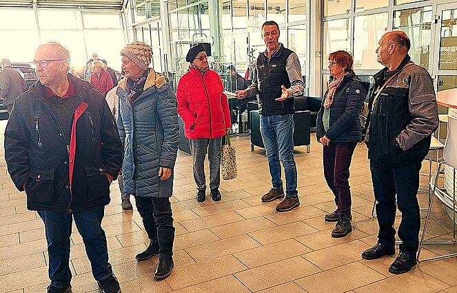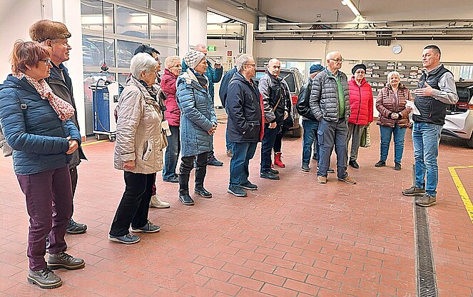 Herr Franz Palmetshofer (Betriebsleiter) und Thomas Leitner begrüßten 43 Mitglieder zu einer Betriebsbesichtigung im Autohaus und Werkstätte VW Ortner. Bei einer Führung durch den Schauraum von VW, Audi und Skoda erfuhren wir viel über den Familienbetrieb. Weiters besichtigten wir die Werkstätte, das Ersatzteil - und Reifenlager, die Spenglerei die Lehrlingswerkstätte. Wir bekamen viele Infos zum Neuwagenkauf, zur Reparaturannahme und zu den Abläufen in der Werkstatt. Bei einem kleinen Imbiss wurden vom Betriebsleiter noch Fragen beantwortet und jeder Teilnehmer bekam eine Infomappe mit einem Gutschein für eine Autowäsche. Siegi Kern bedankte sich im Namen aller Teilnehmer für den interessanten Nachmittag.