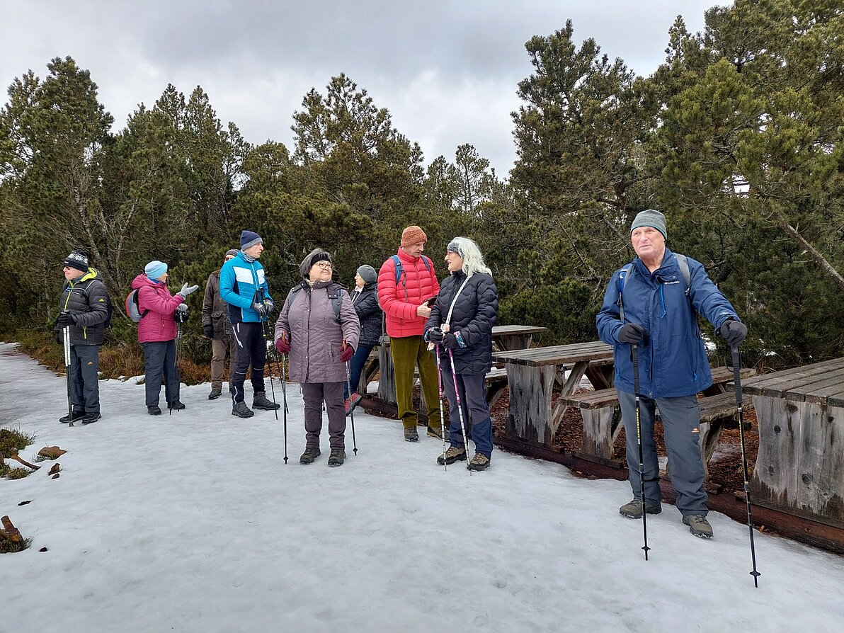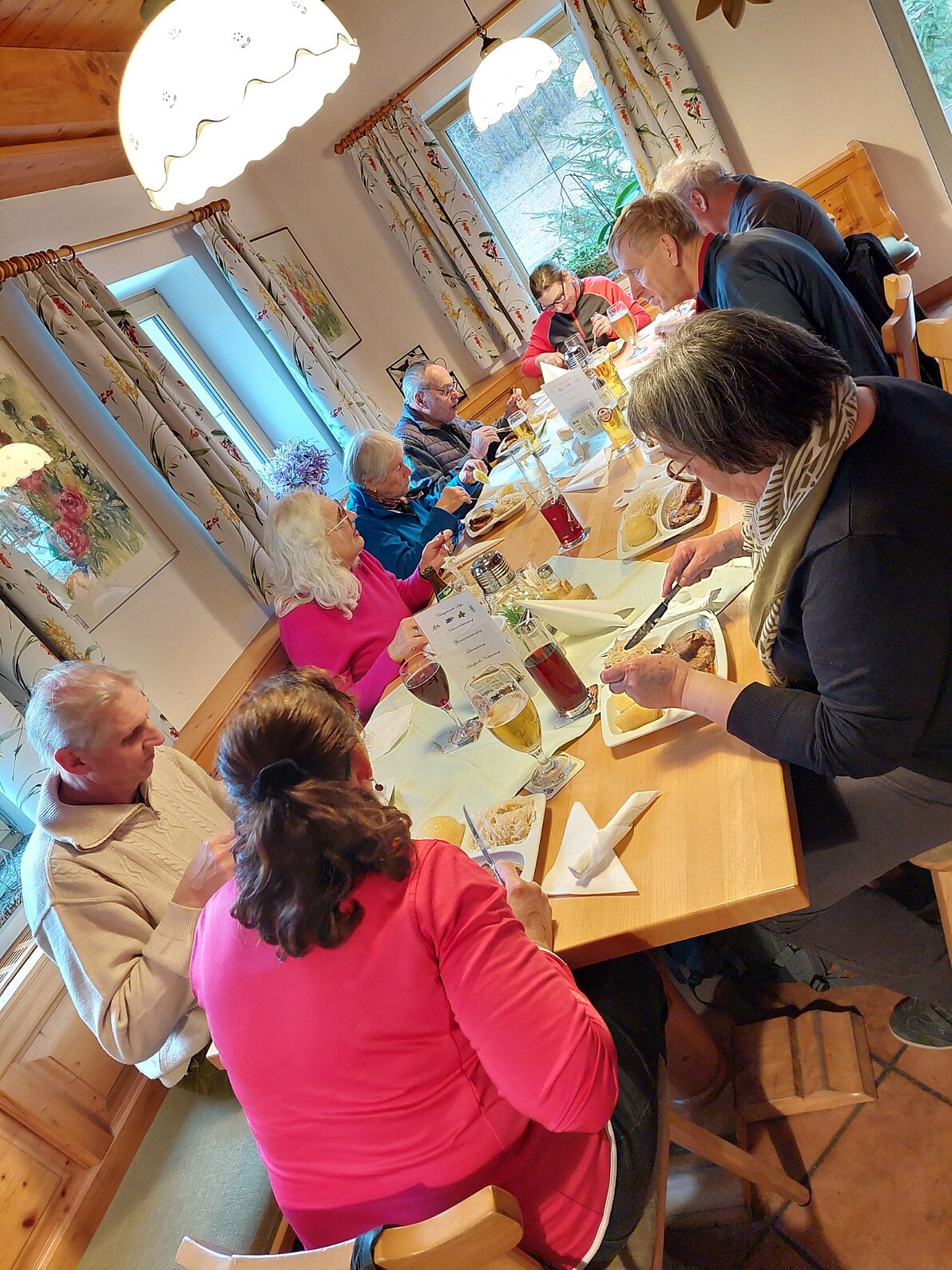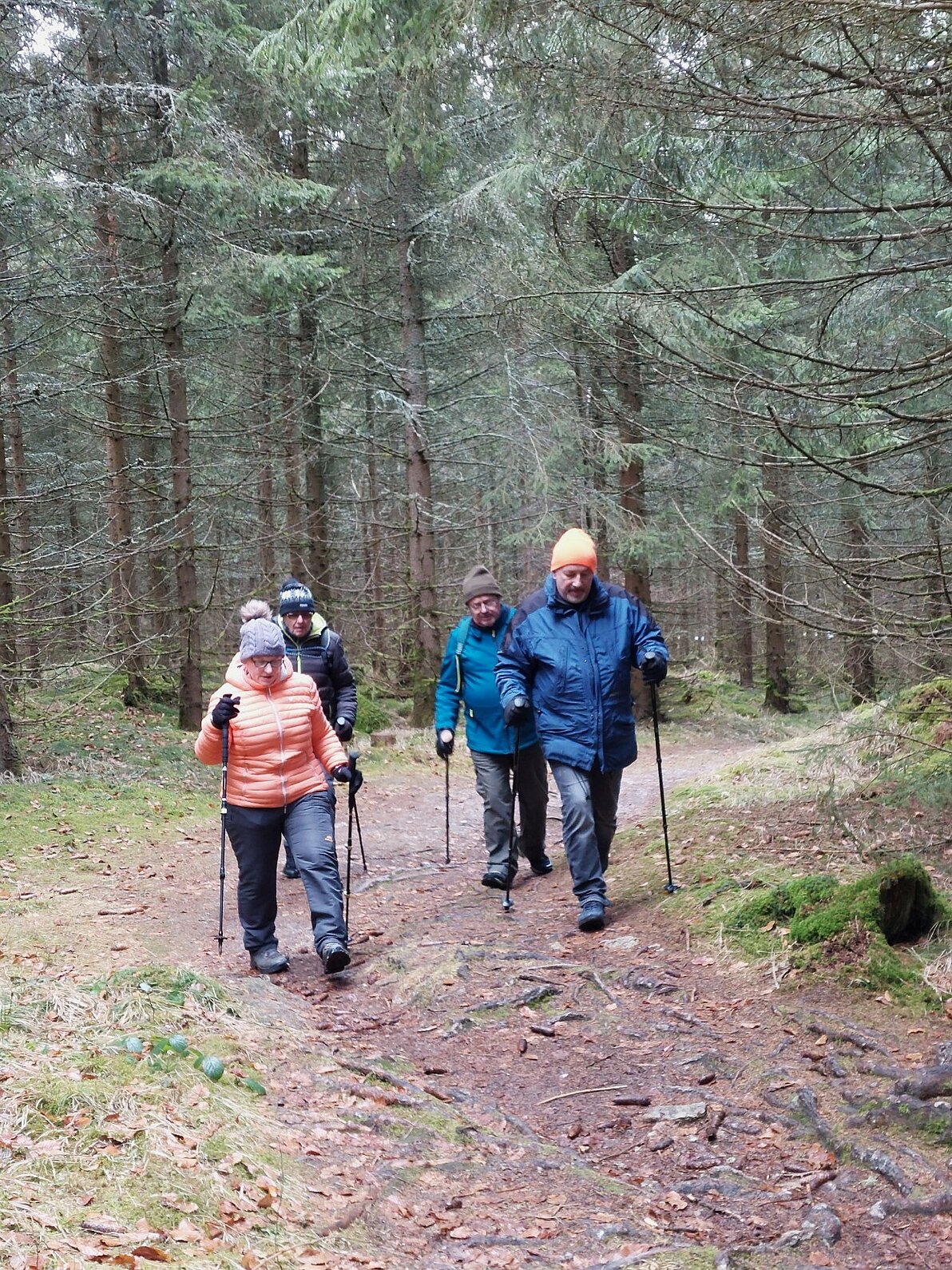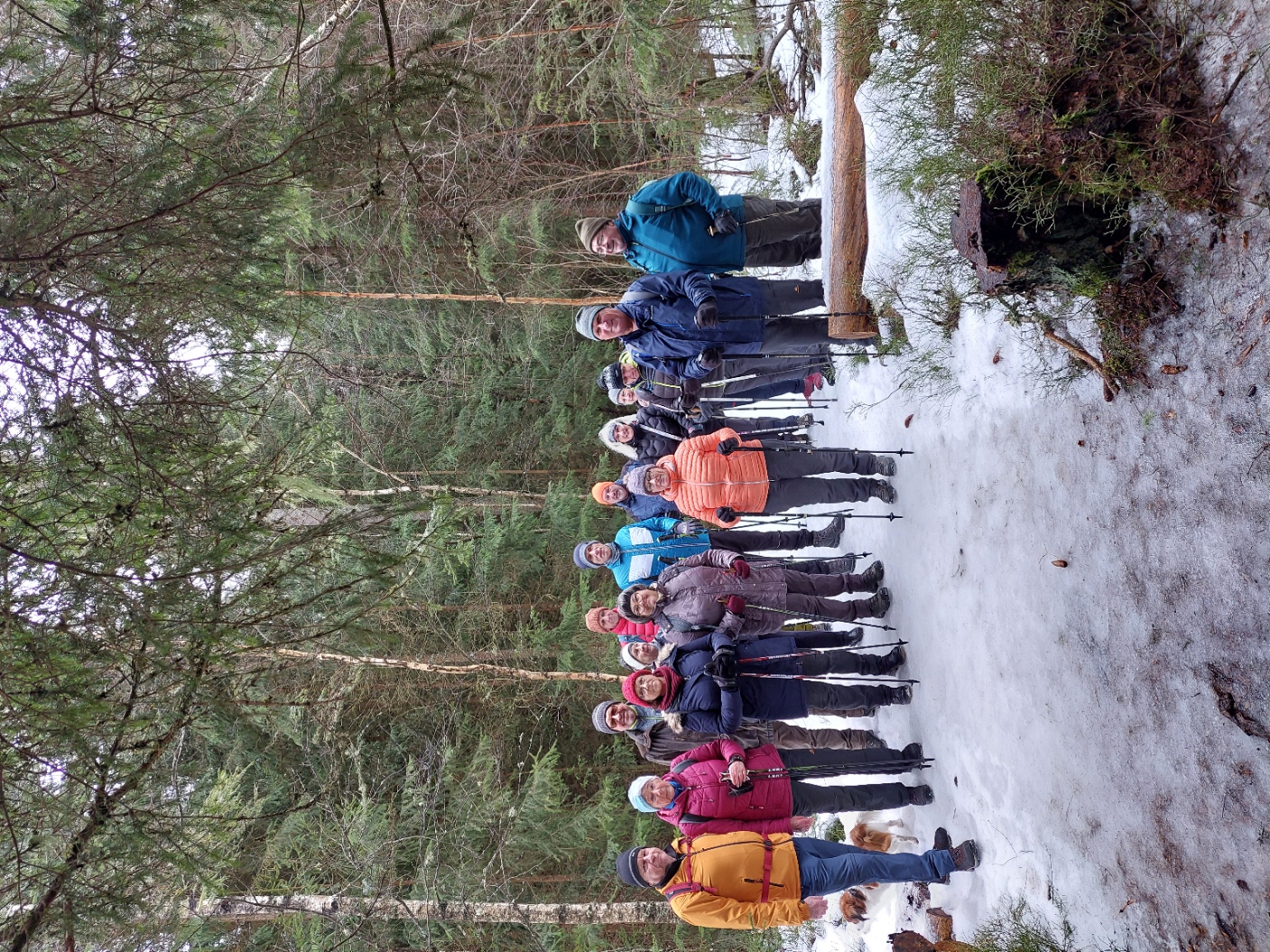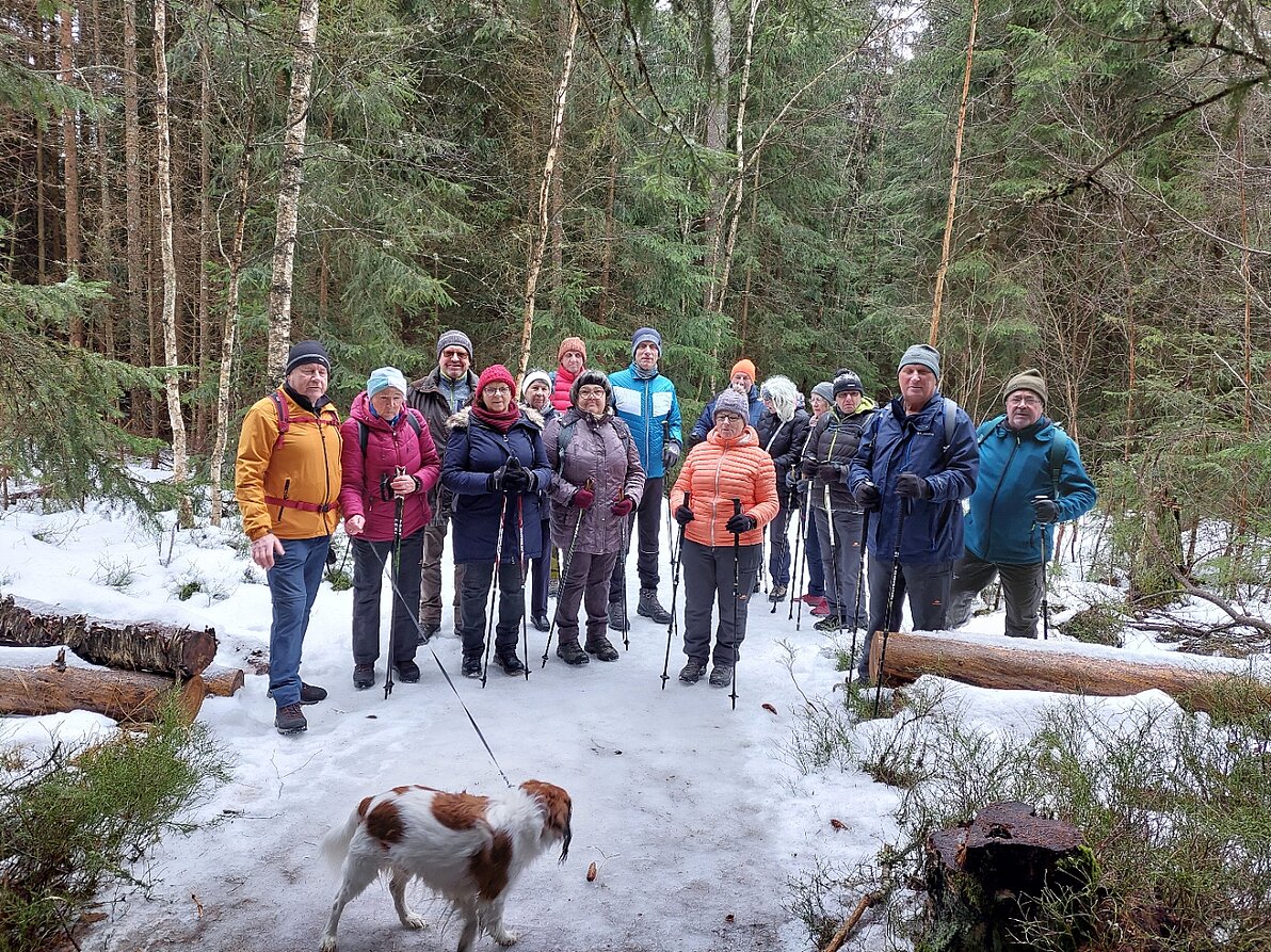 Vom Treffpunkt in Naarn bildeten wir Fahrgemeinschaften nach Liebenau zum Tannermoor. Dort wanderten wir den Moorlehrpfad zum Aussichtsturm, den einige Mutige auch bezwangen. Weiter ging es dann zur "Lehrmüller - Mauer" mit prächtigen Granitfelsen und zurück zum Rubner Teich. An einigen Stellen war der Weg vereist, sodaß unsere Aufmerksamkeit gefordert war. Alle 16 Wanderer kamen gut wieder beim Ausgangspunkt der Wanderung an und ließen sich zum Abschluß den Schweinsbraten beim Moser- Wirt gut schmecken!