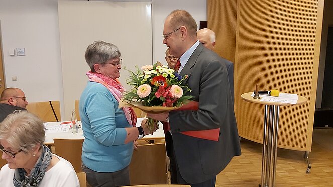 Sylvia Pichelsberger legte ihr Amt als Stellvertreterin des Vorsitzenden zurück. Anton Mader bedankte sich für ihre Mitarbeit und überreichte ihr eine Dankesurkunde sowie einen Blumenstrauß.