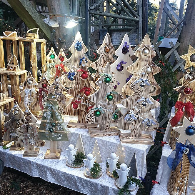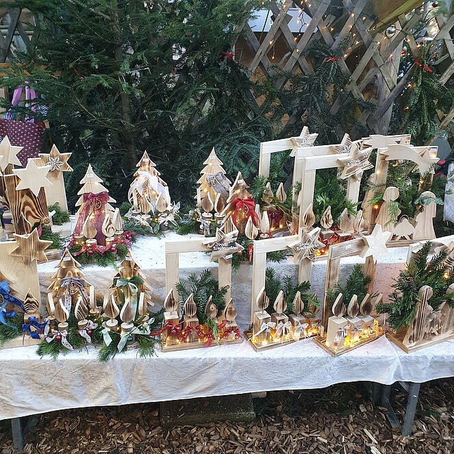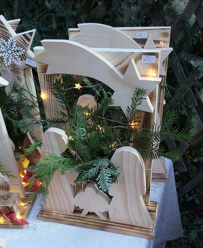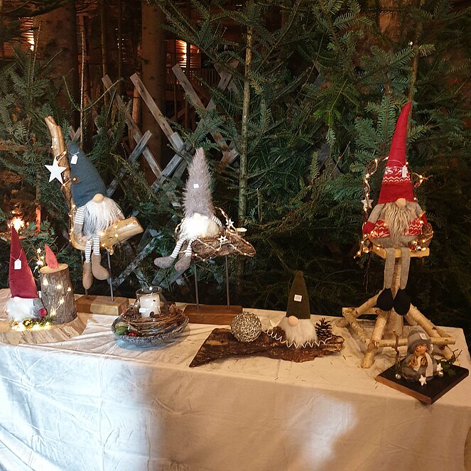 Viele Aussteller boten ihr reichhaltiges weihnachtliches Angebot zu günstigen Preisen an. Auch das kulinarische Angebot war groß. Von Punsch, Glühwein, Glühmost, Kekse, Engelslocken bis hin zum Käse war alles vorhanden. Ebenfalls war ein Motorsägenschnitzer vor Ort.
