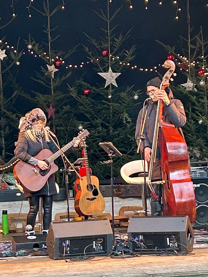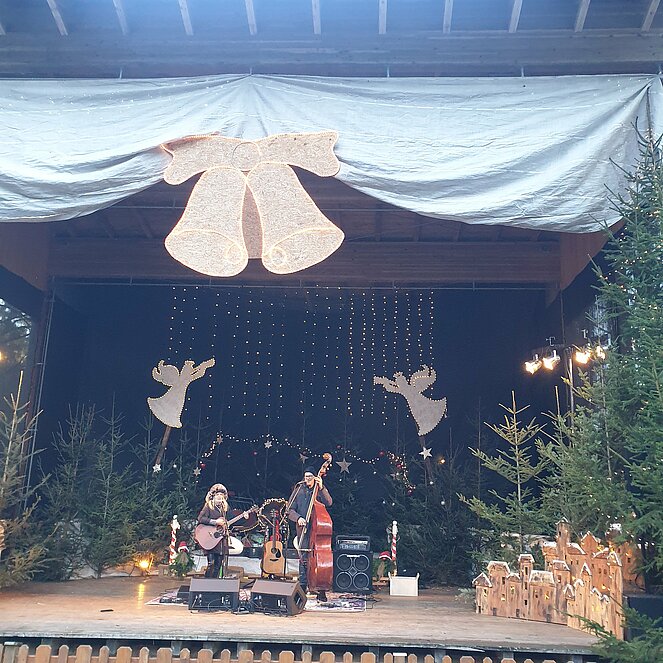 Auf der Bühne gab es Livemusik. Für Kinder gab es eine Wichtelstube, Pony reiten oder sie konnten mit Schneeweißchen und Rosenrot mit Bär und Zwerg spazieren gehen.