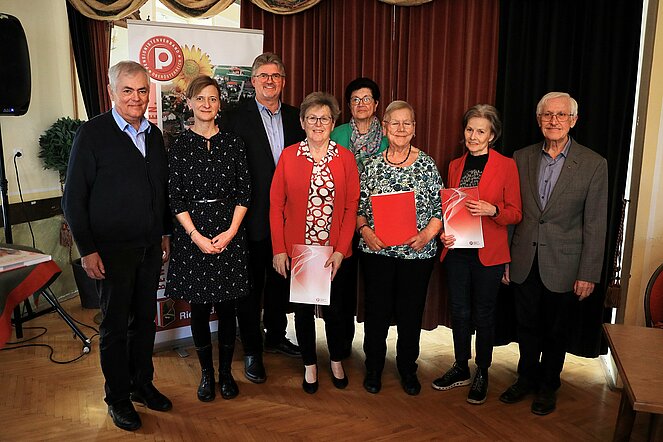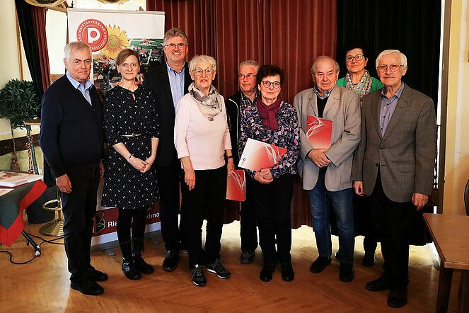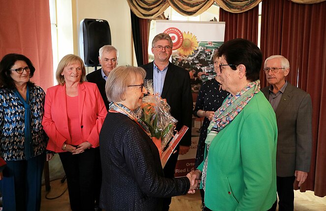 Am Mittwoch, 12. März 2025 fand die Jahreshauptversammlung im Gasthaus Mayr statt. Unsere Vorsitzende konnte viele Mitglieder, die Ehrengäste NR Abgeordnete Sabine Schatz, Bez. Vors. Leopold Pichlbauer, Bgm. Christian Tauschek, SPÖ Vors. Christian Blumauer und den Bankstellenleiter Harald Hintersteininger von der Raiba Ried/R. begrüßen. Nach dem Gedenken für die sechs Verstorbenen des letzten Jahres und der Begrüßungsworte unserer Ehrengäste, gab es noch die Berichte der Vorsitzenden, des Kassiers und der Kontrolle. Bez. Vorsitzender Leopold Pichlbauer führte im Anschluss die Neuwahlen laut Wahlvorschlag durch, alle Funktionäre wurden einstimmig angenommen. Als Dank für Ihre langjährige Mitgliedschaft wurden 22 Mitglieder geehrt. Zwei ausscheidende Funktionäre erhielten das Landesehrenzeichen in Gold und einer in Silber für ihre langjährige, wertvolle Arbeit im Pensionistenverband. Nach einer kurzen Pause folgte die Fotoschau mit schönen Erinnerungen vom vergangenen Jahr.