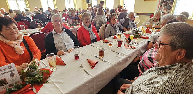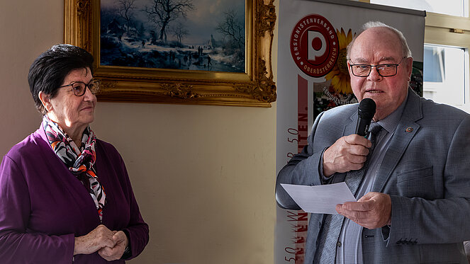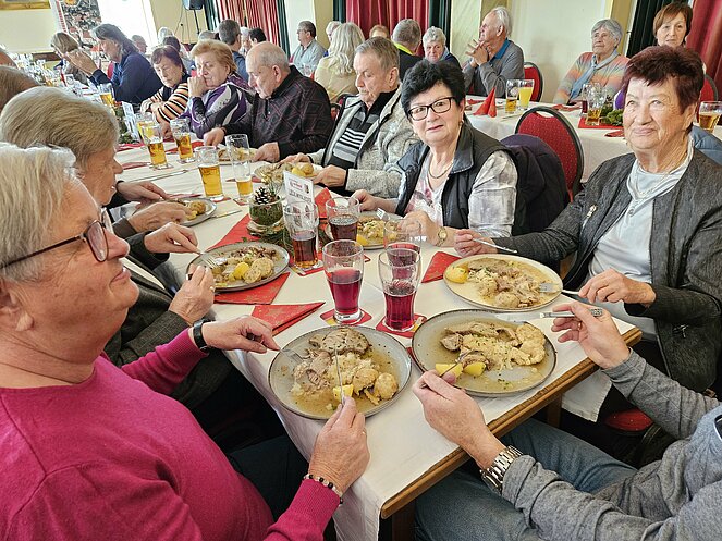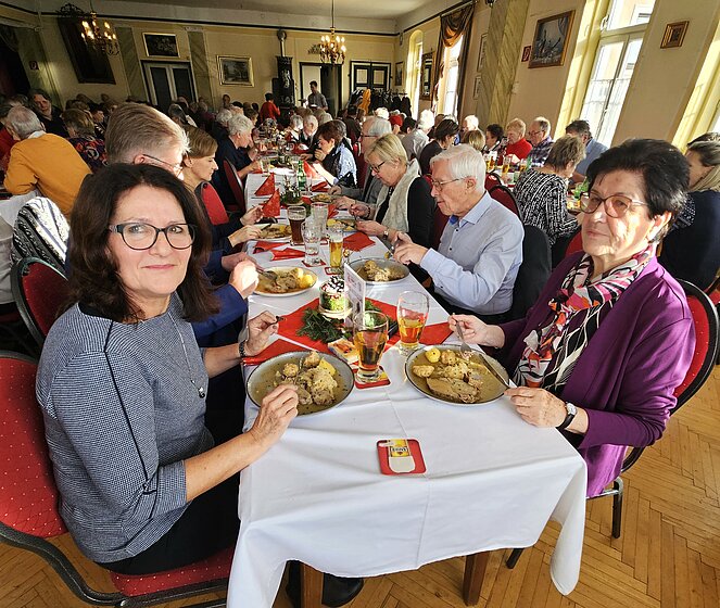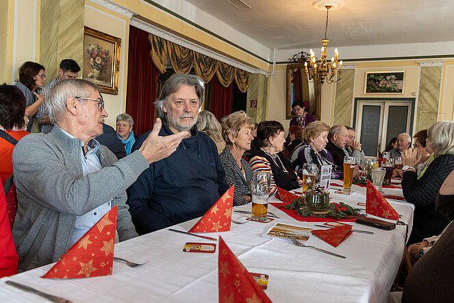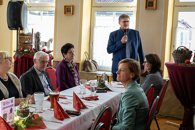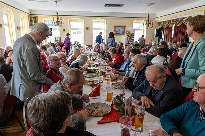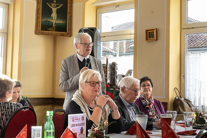 Unsere Vorsitzende Herta Hiesböck begrüßte die Nationalrätin Sabine Schatz, unseren Bgm. Christian Tauschek, Pfarrer Engelbert Leitner und einen Saal voller Mitglieder.