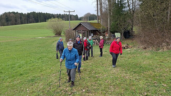 Die Route führte zunächst entlang des idyllischen Rinnau-Baches, dessen ruhiges Plätschern die Wanderung begleitete. Weiter ging es hinauf nach Oberkalmberg, wo sich immer wieder schöne Ausblicke auf die umliegende Landschaft boten. Anschließend führte der Weg über Letten zurück in Richtung Ausgangspunkt.