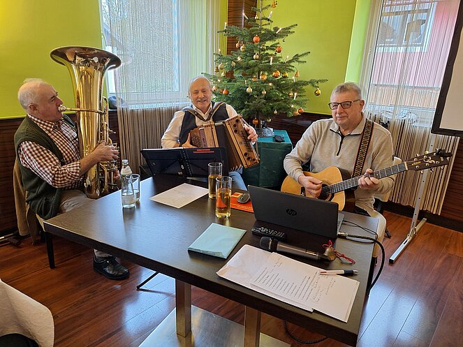 Mit lustigen Geschichten und besinnlichen Gedichten sowie mit weihnachtlichen Weisen gespielt von Karl Heimel, Ferdinand Lehner und Fritz Eder, wurden wir auf das bevorstehende Weihnachtsfest eingestimmt.