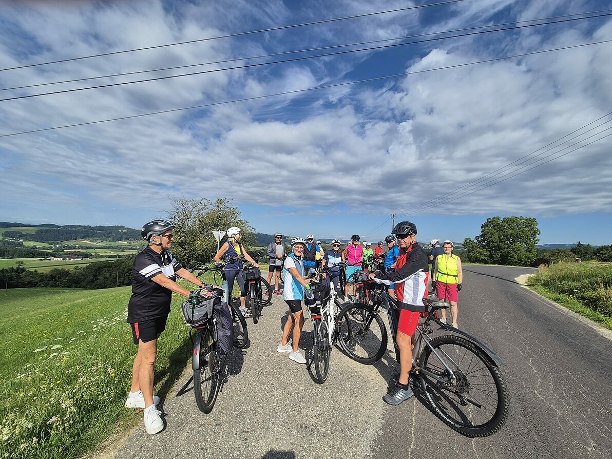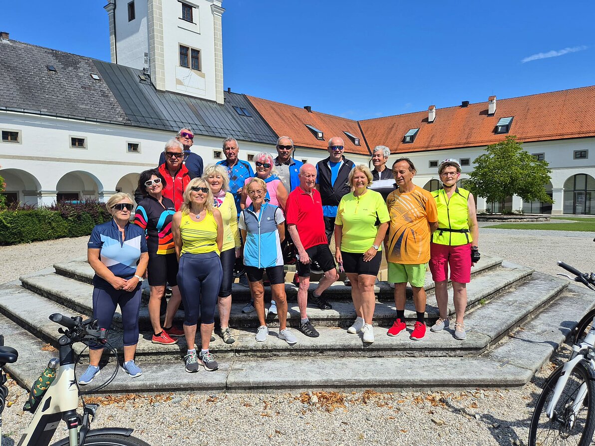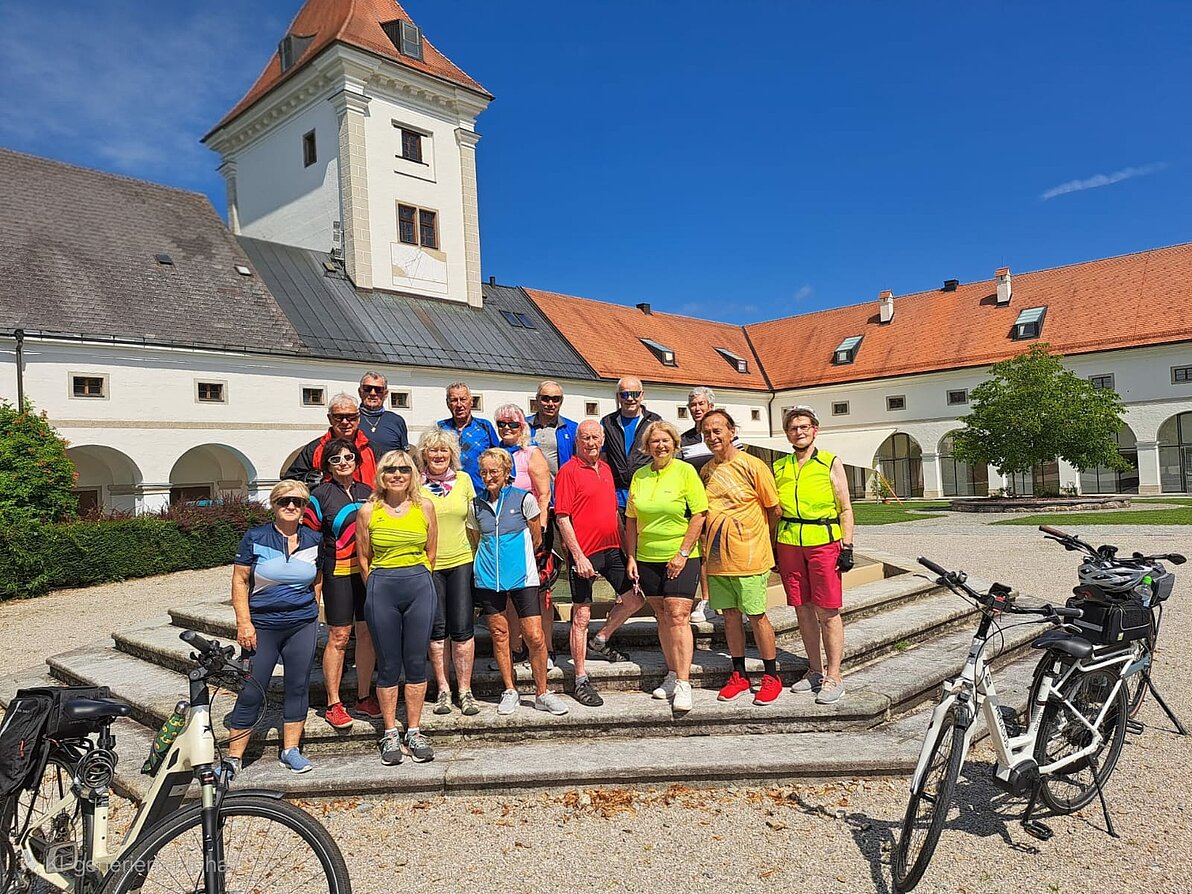 Schwertberg am 23.7.2025. -17 Teilnehmer sind mit den Autos samt Räder nach Grein gefahren. Von dort starteten wir mit den Rädern nach Bad Kreuzen, weiter zum Mondstein (600HM)weiter durch das Gießenbachtal nach Waldhausen. Mittagsrast machten wir im Gasthaus Schauer. Nachmittags sind wir nach Langenbach-Dörfl-Aumühle gefahren und über einen Bergrücken sind wir wieder in Grein angekommen, wir radelten 53km.
