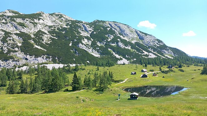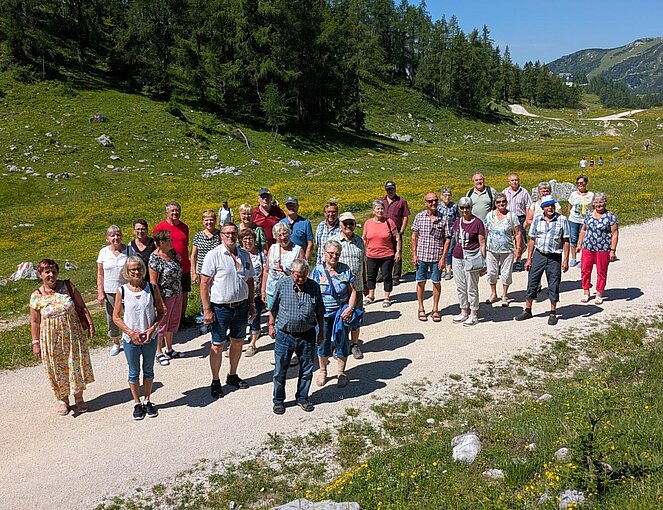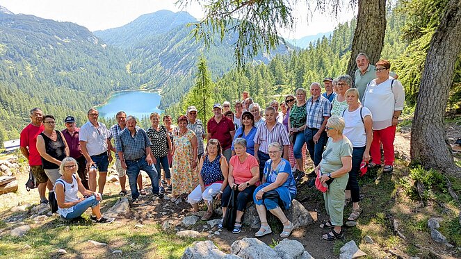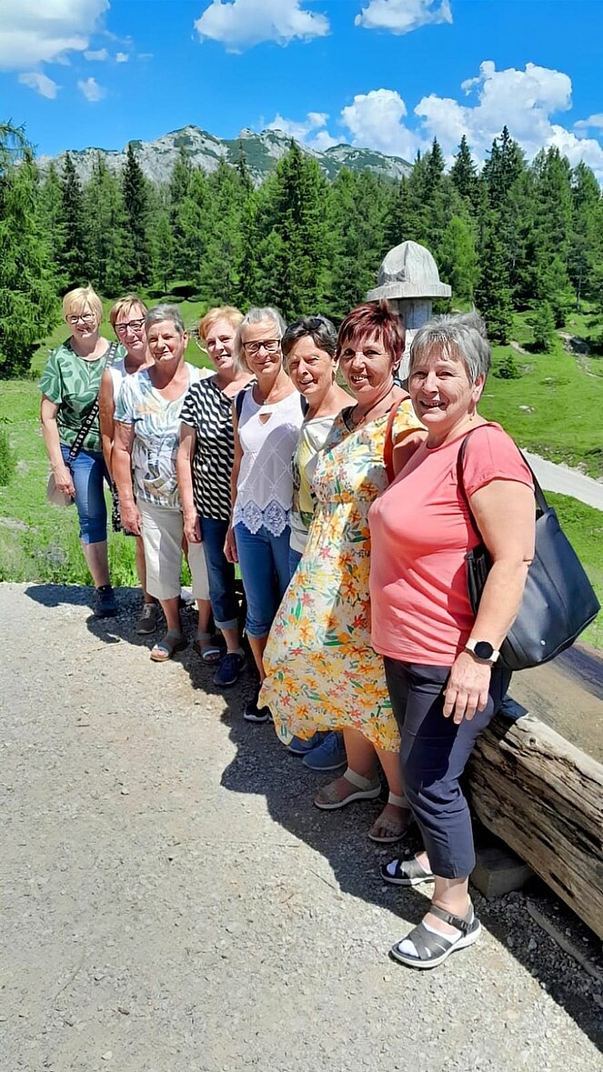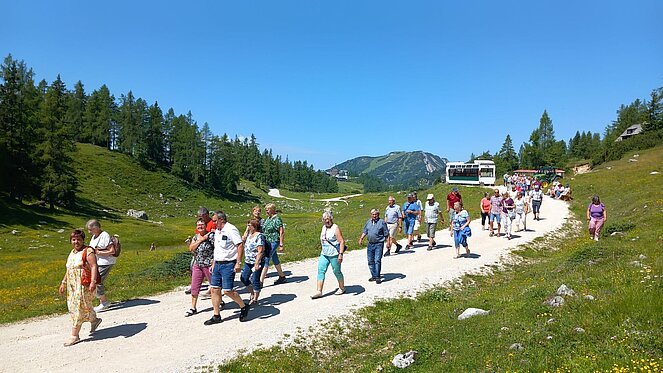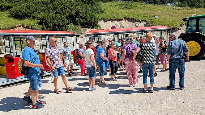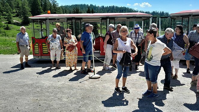 Mit einem Bummelzug machten wir eine Rundfahrt wo wir das gesamte Bergpanorama bestaunen konnten. Nach einem kleinen Spaziergang kamen wir zu einem Aussichtspunkt, von dem wir einen herrlichen Blick auf den Steirersee und die Südwand des Sturzhahns genossen.
