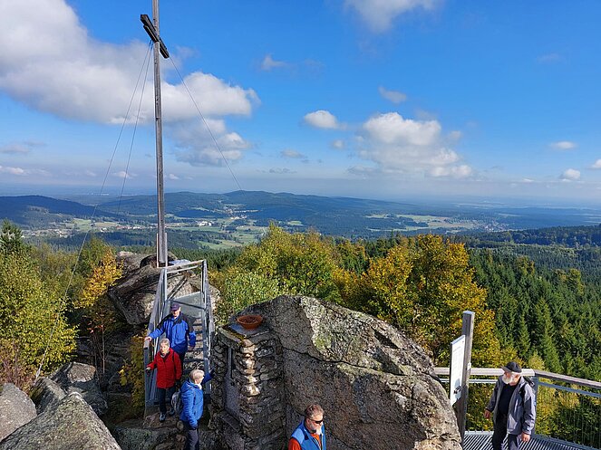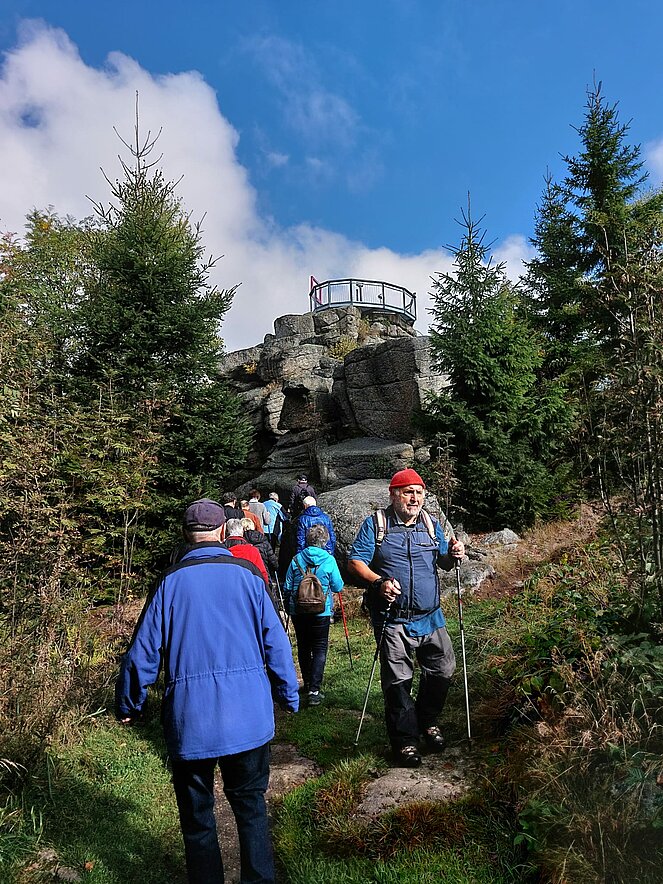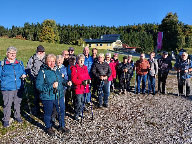 An einem sehr schönen Herbsttag fuhren wir in Fahrgemeinschaften von Waldhausen nach Harbach-Hirschenwies. Vom „Xundwärtsparcours Hirschenwies“ (776 m) wanderten wir in 1 ½ Std. auf den Nebelstein (1017 m). Oben angekommen, hatten wir auf dem Gipfelstein einen wunderbaren Ausblick ins Wald- und Mühlviertel und nach Südböhmen. In der Nebelsteinhütte wurden wir zu Mittag bestens versorgt, ein großes Dankeschön an Karin Hruska und ihrem Team.