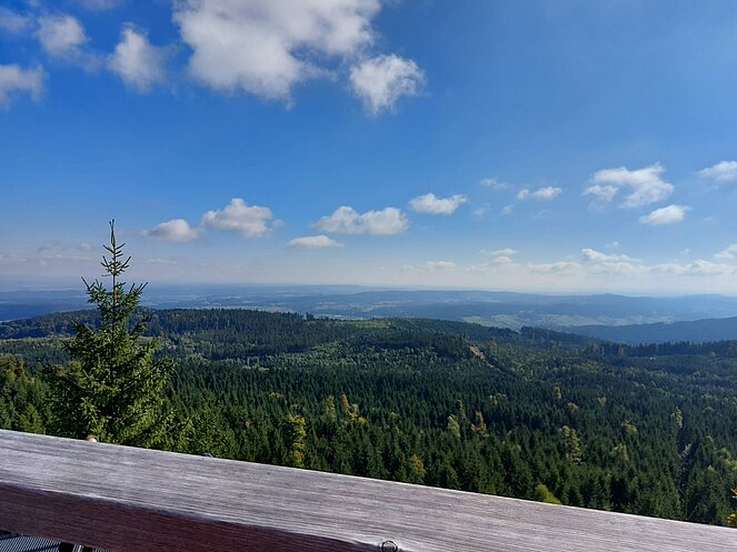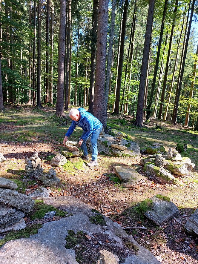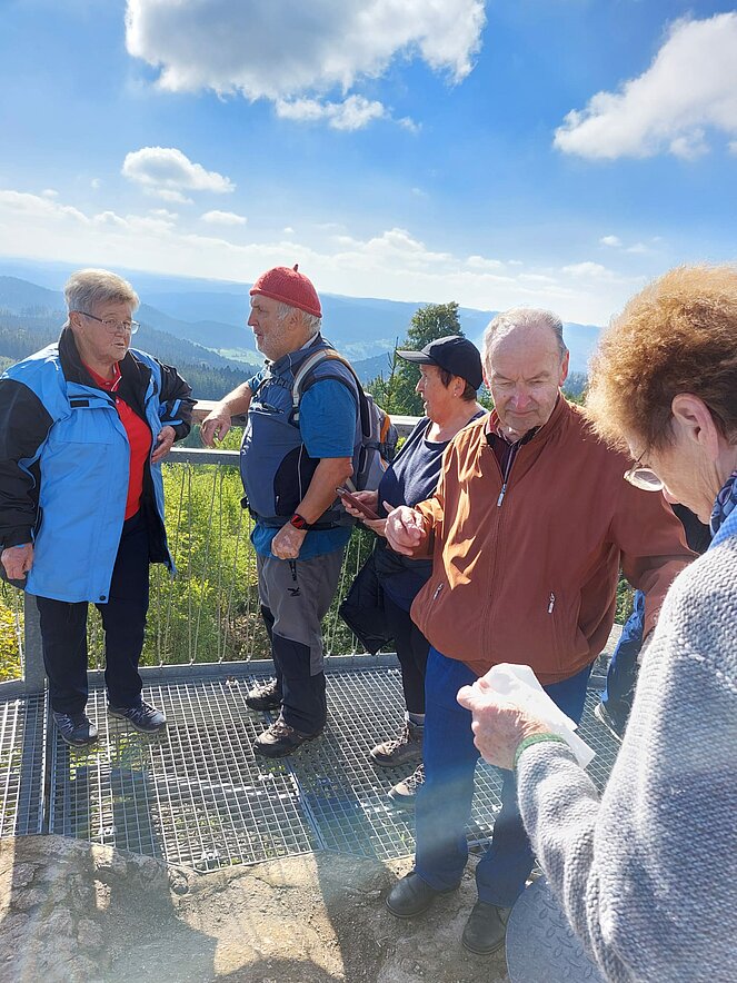 Zurück ging`s vorbei am „Steinplatz“ bis zum Parkplatz auf der „Nebelsteinstraße“ (896 m). Heimwärts fuhren wir nach Arbesbach, wo einige den örtlichen Regionalmarkt und das Café Huber besuchten. Anschließend fuhren wir nach Waldhausen heim.