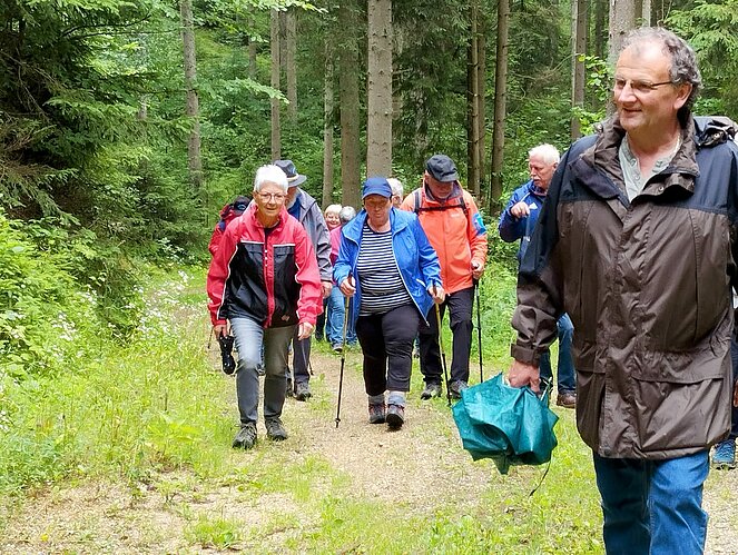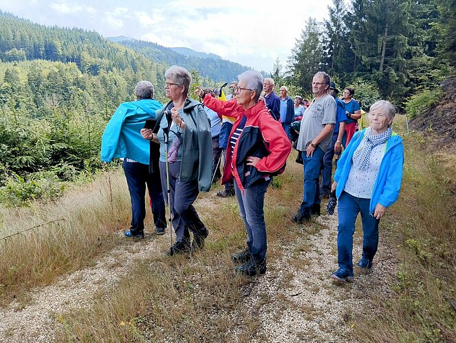 Die Sommerwanderung startete beim ehemaligen „Bruckhäusl“, vorbei beim „Schniatzplotz“ und „Rehstodl“ bis zur „Domherrnbucha“. Zurück gings auf der Forststraße bergab und über die „Daumpfsogwiesn“ zum Ausgangspunkt unserer Wanderung.