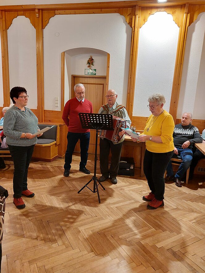 Die Vorsitzende der OG-Waldhausen, Frau Maria Undeutsch, begrüßte alle Mitglieder und Funktionäre sowie den Bezirksvorsitzenden, Herrn Leopold Pichlbauer. Musikalisch gestaltet wurde die Feier von der Singgruppe der OG-Waldhausen und vom Fritz Koch mit der Ziehharmonika.