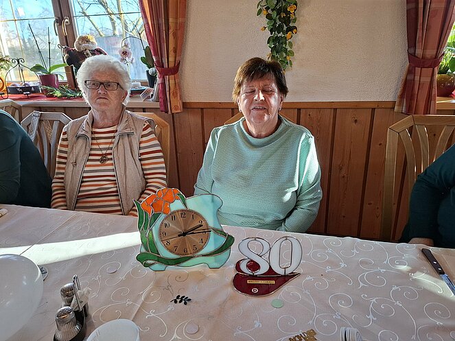 Unser Mitglied Schachl Roswitha feierte am 19. Dezember ihren 80ten Geburtstag. Wir durften beim Wirt in der Au mit ihrer Familie und Freunden einige schöne Stunden mitfeiern. Es gab ein hervorragendes Buffet bei dem wir uns köstlich bedienten. Unser Obmann Spindler Franz übergab Roswitha eine 80er Skulptur und eine wunderschöne Tiffanyuhr welche sie sichtlich sehr freute. Wir wünschen Roswitha alles Gute für die Zukunft.