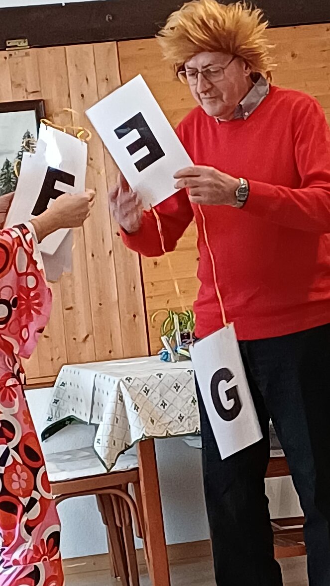 Beim Tanzen und bei lustigen Unterhaltungsspielen wurde viel gelacht, ob gewonnen oder verloren - eine richtige Faschingsgaudi wars, sogar mit geistlicher Unterstützung - dieser aber sehr mit dem Gebet ums Bier beschäftigt war.