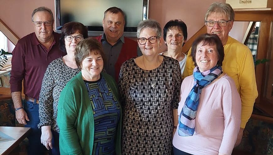 Der Vorstand der Ortsgruppe Waldzell (von links nach rechts): Hannes Moser, Vroni Ibinger, Maria Buttinger, Georg Ibinger, Aurelia Weissenbrunner, Inge Moser, Resi Jöchtl und Obmann Johann Jöchtl.