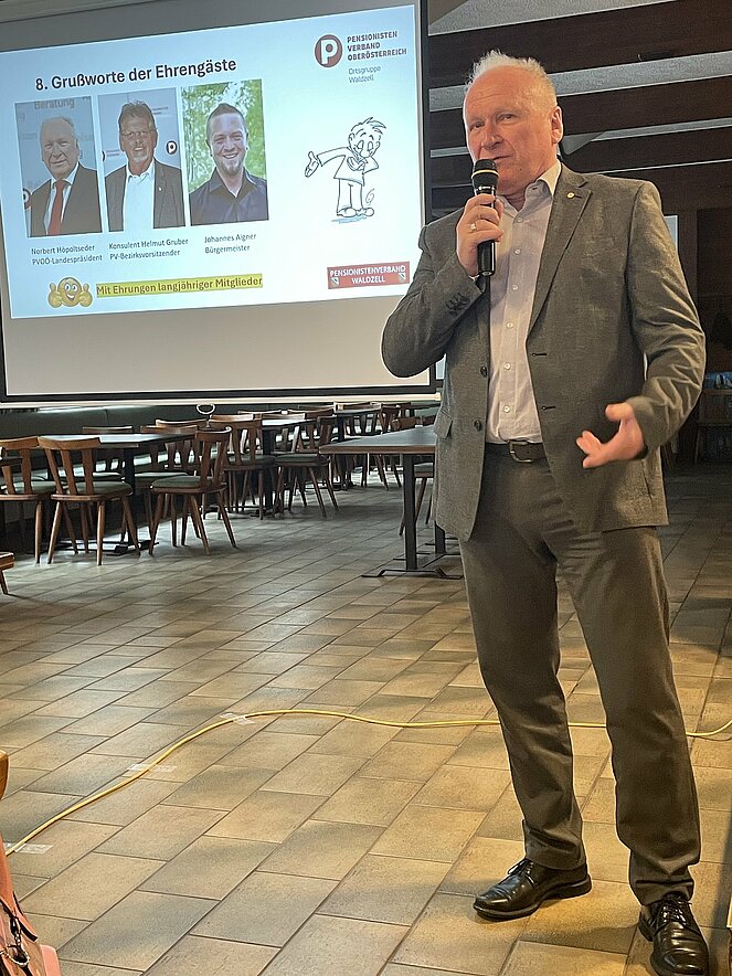Unser Bezirksvorsitzender, Konsulent Helmut Gruber berichtete über Aktuelles und momentane Ausbildungsmöglichkeiten, bevor sich unser neuer Landesvorsitzender Norbert Höpoltseder vorstellte und die Ehrungen langjähriger Mitglieder durchführte.