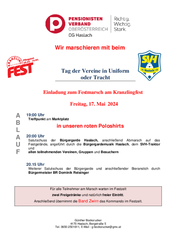 Um uns deutlich zu erkennen, sollten wir in unseren roten PVÖ Leibchen / Jacken .... mitmarschieren.