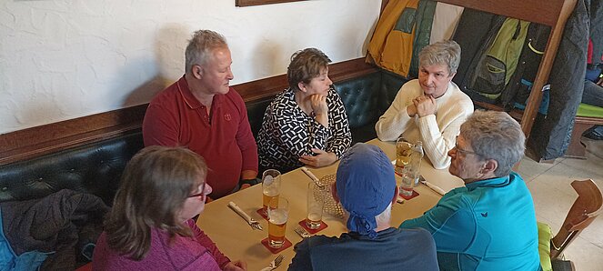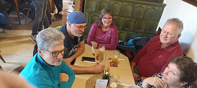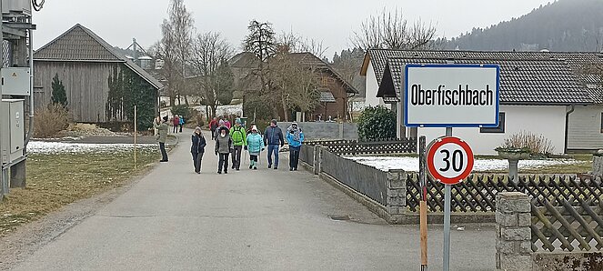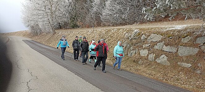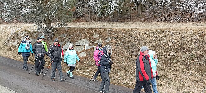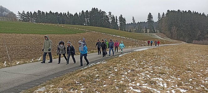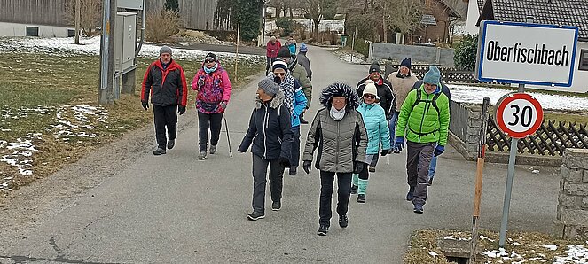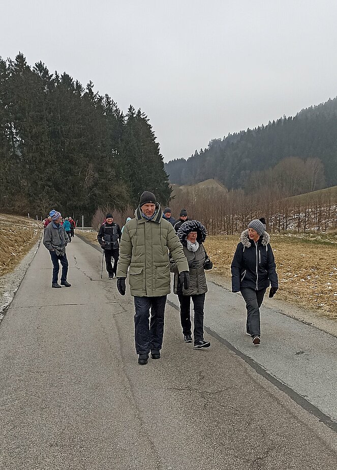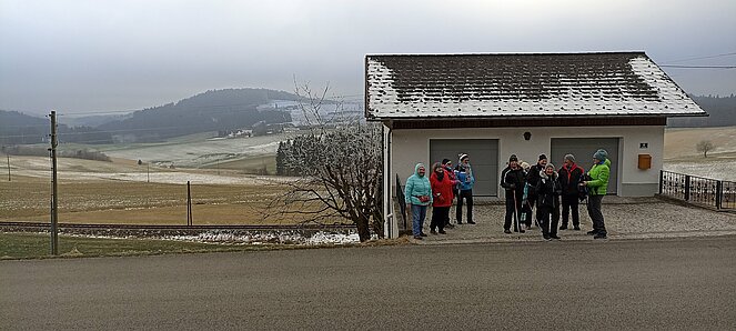 Gegen 14 Uhr machten wir uns wieder auf den Rückweg über die alte Bundesstraße über Hehenberg, Bahnhofstraße und Wandschaml wo es zum Abschluss der Wanderung bei der Renate Günthör auch noch eine Aufwärmrunde gab.
